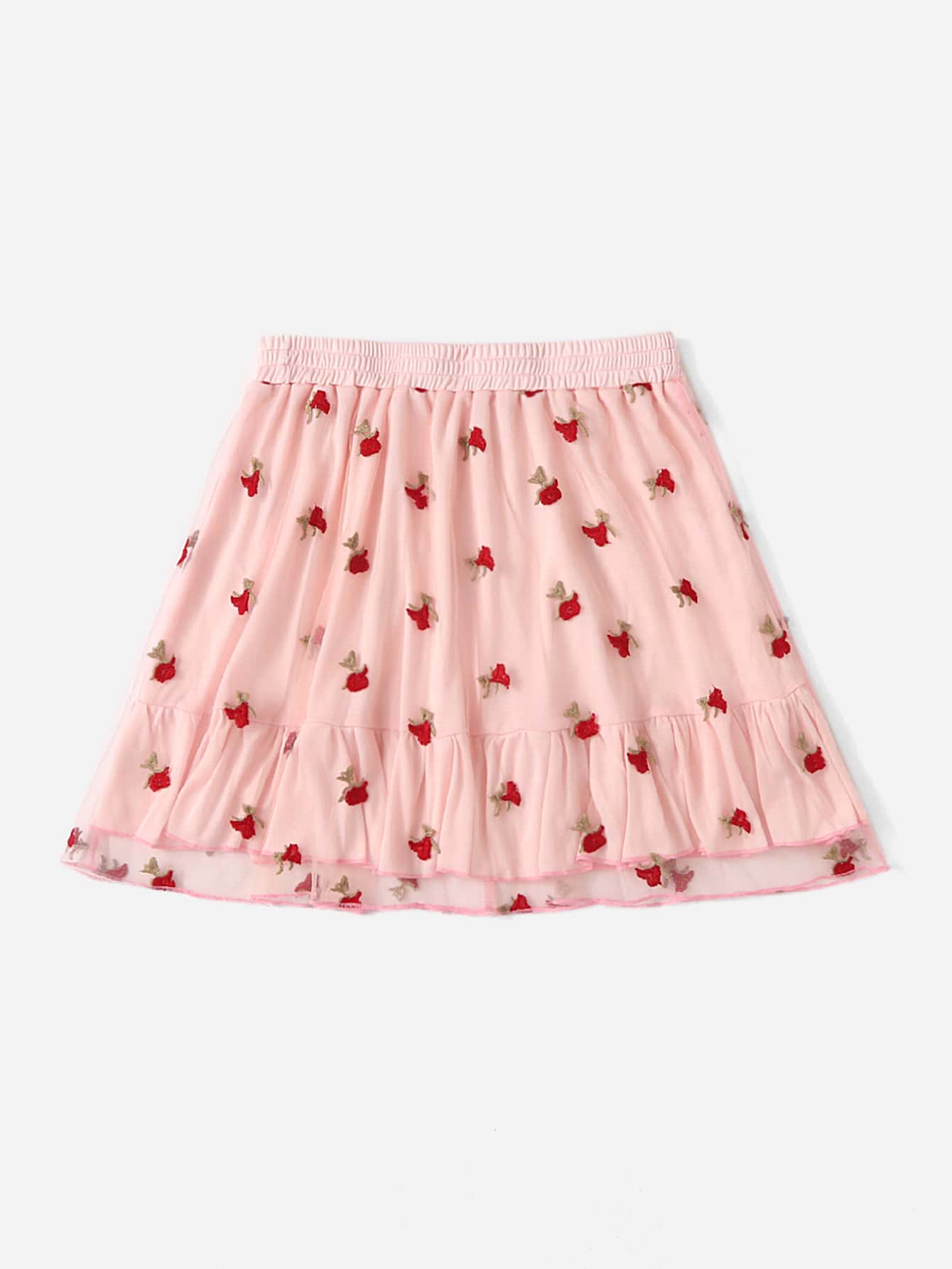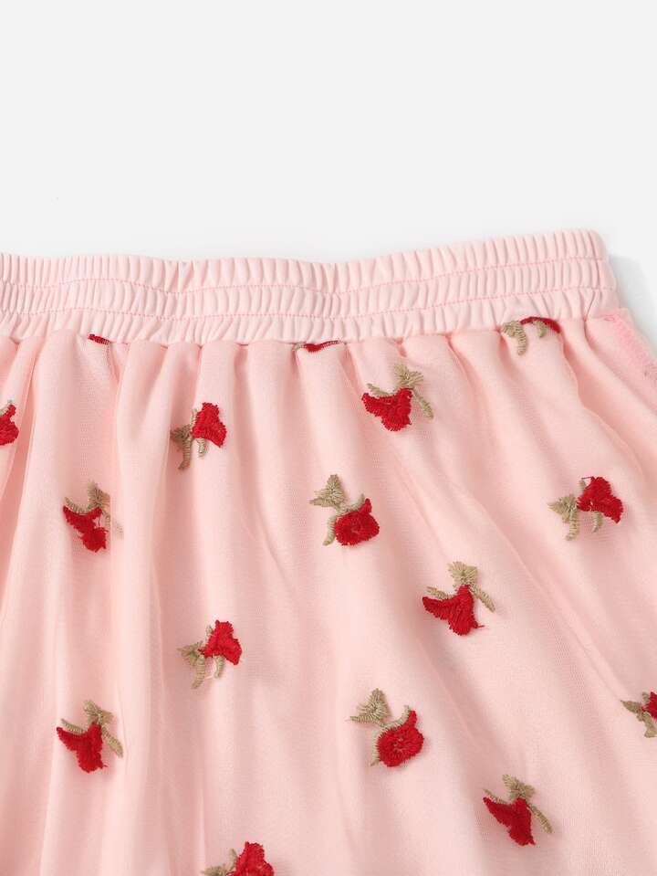 Rock mit Blume Stickerei, Kontrast Netzstoff
