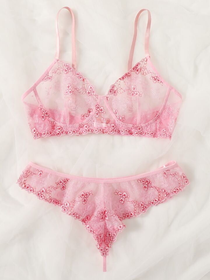Dessous-Set mit Blumen Spitzen