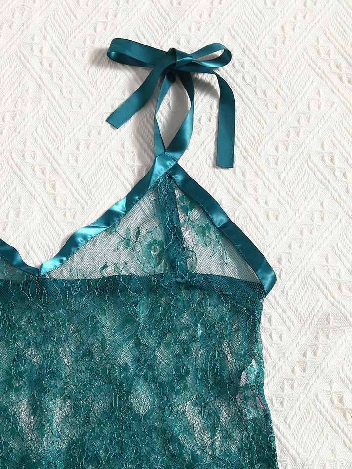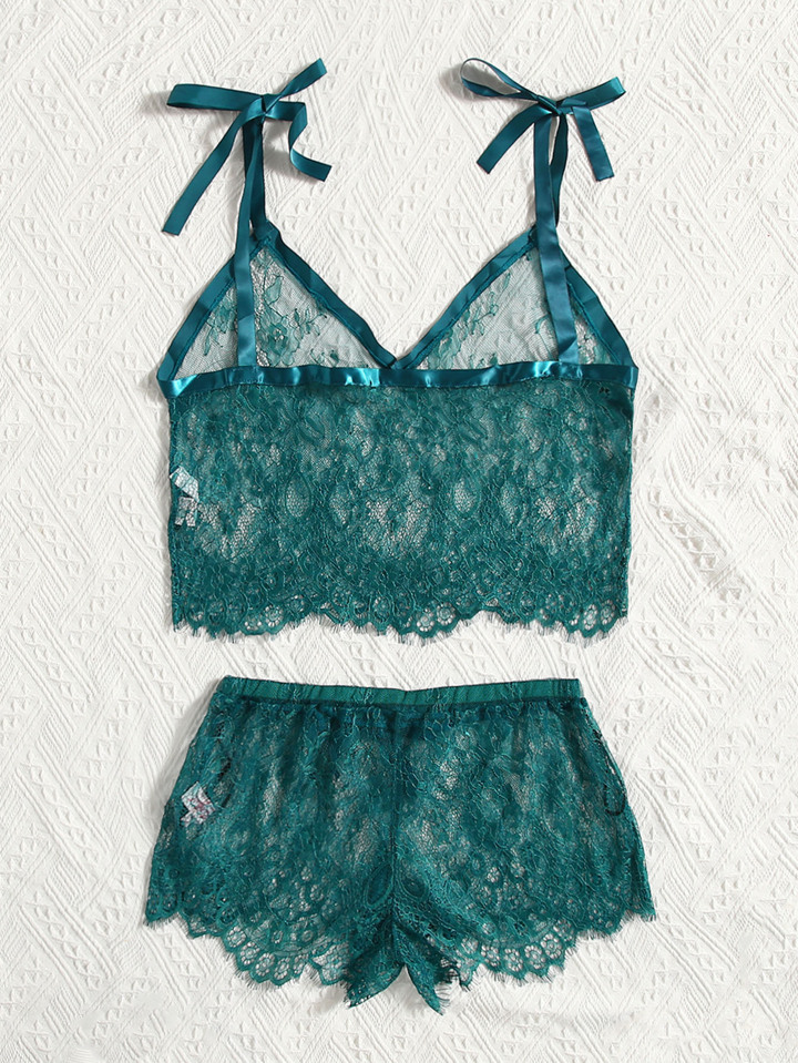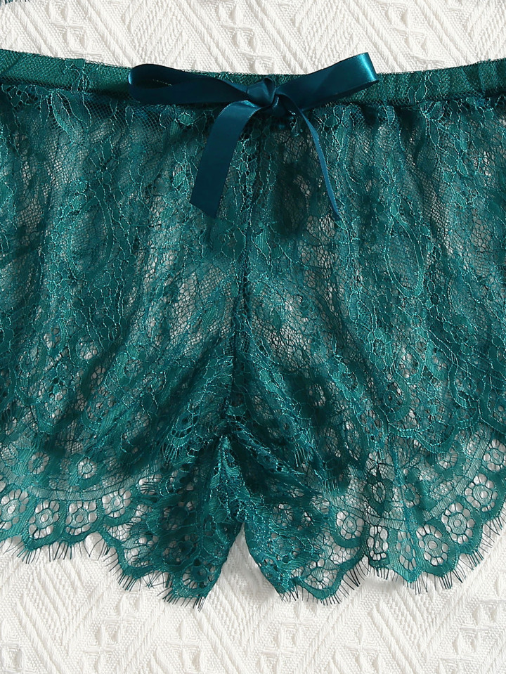 Dessous Set mit Blumenspitze, Band auf Schulter