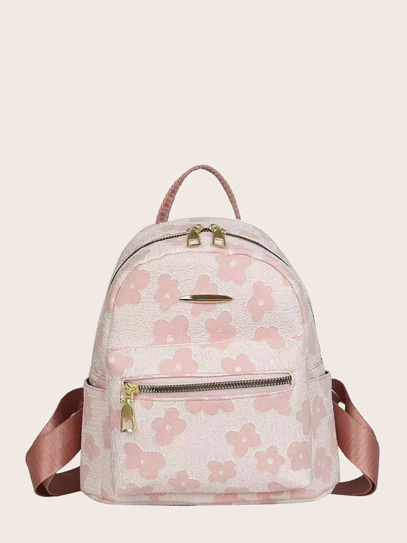 Funktionaler Rucksack mit Blume Muster, Metall Dekor