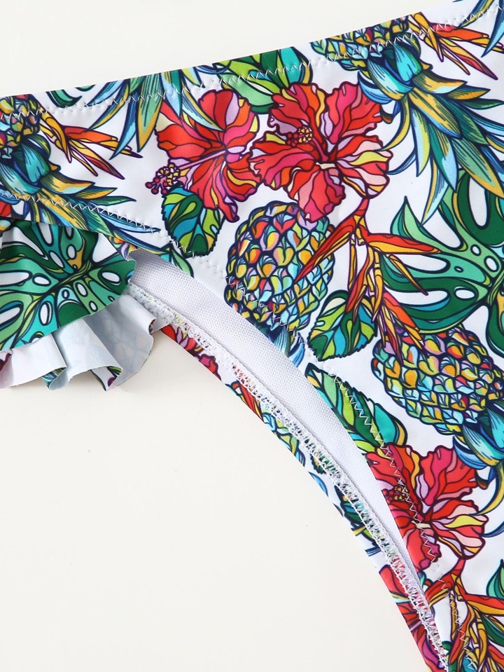 Blumen- und Ananas Rüschen Bikini Set