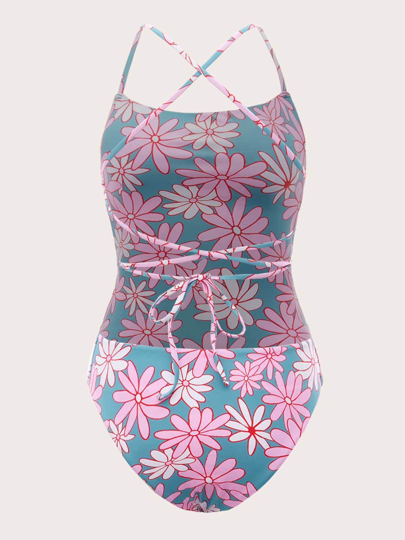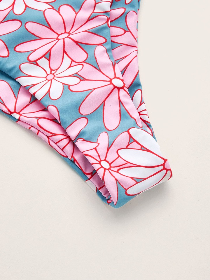 Badeanzug mit Blume Muster, Kreuzgurt