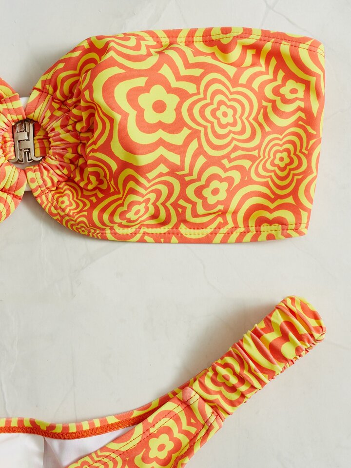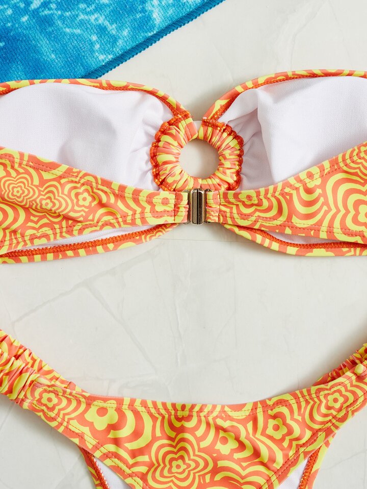 Bikini Set für den Sommer am Strand mit Blumenmuster und Ring-Bandeau-Oberteil