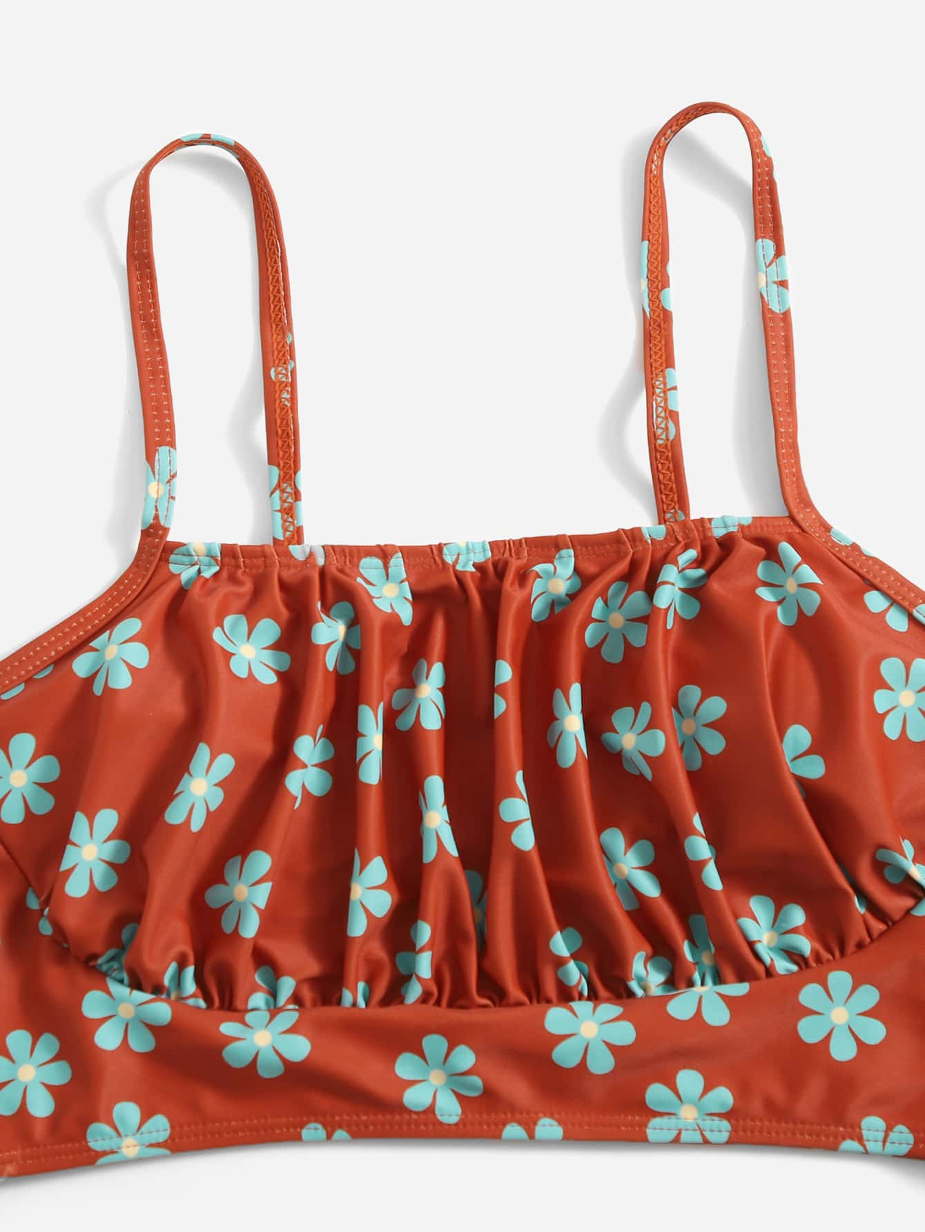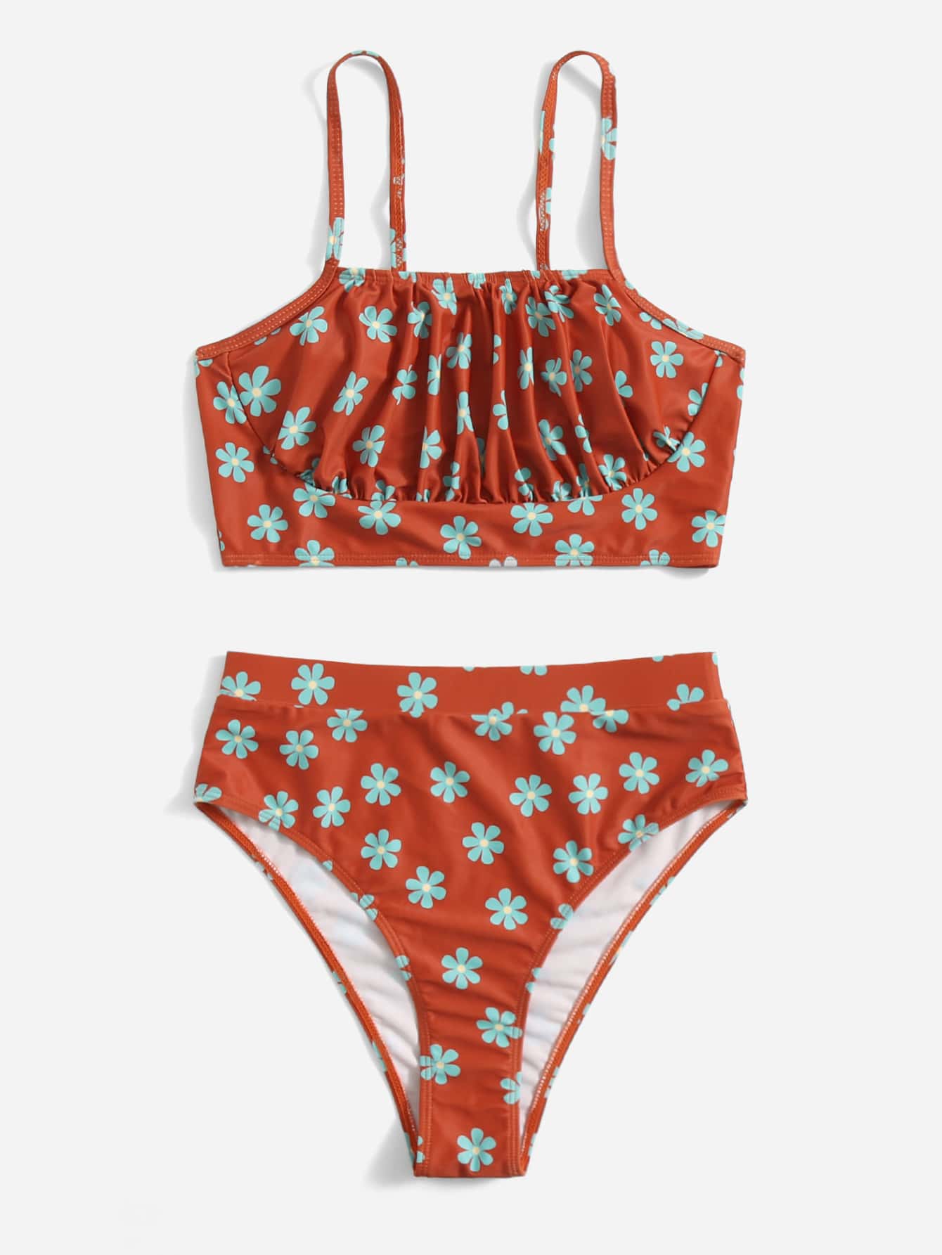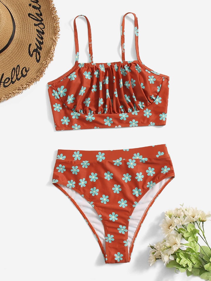 Bikini mit Blumenmuster, mit gerafftem Oberteil und hohem Bund