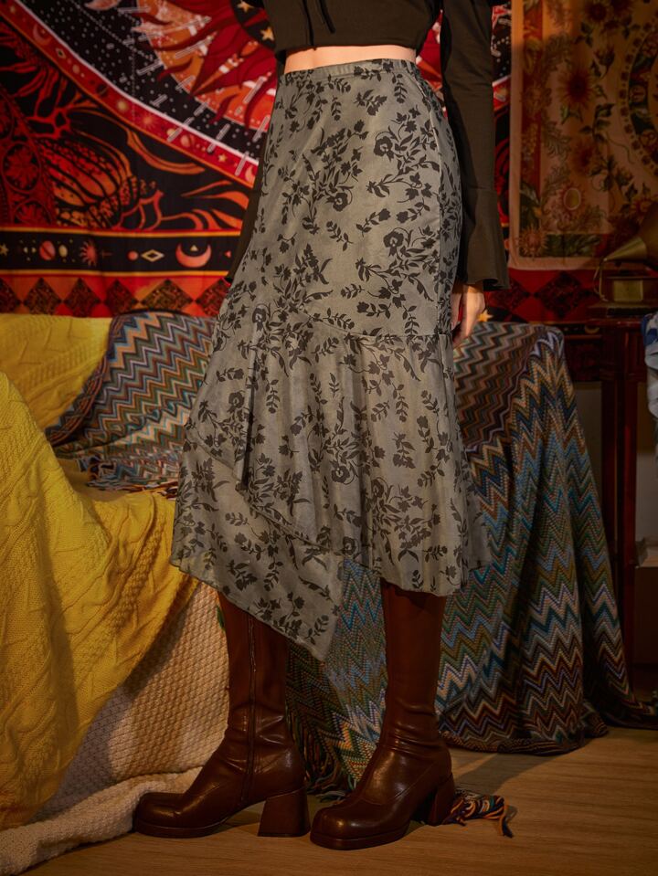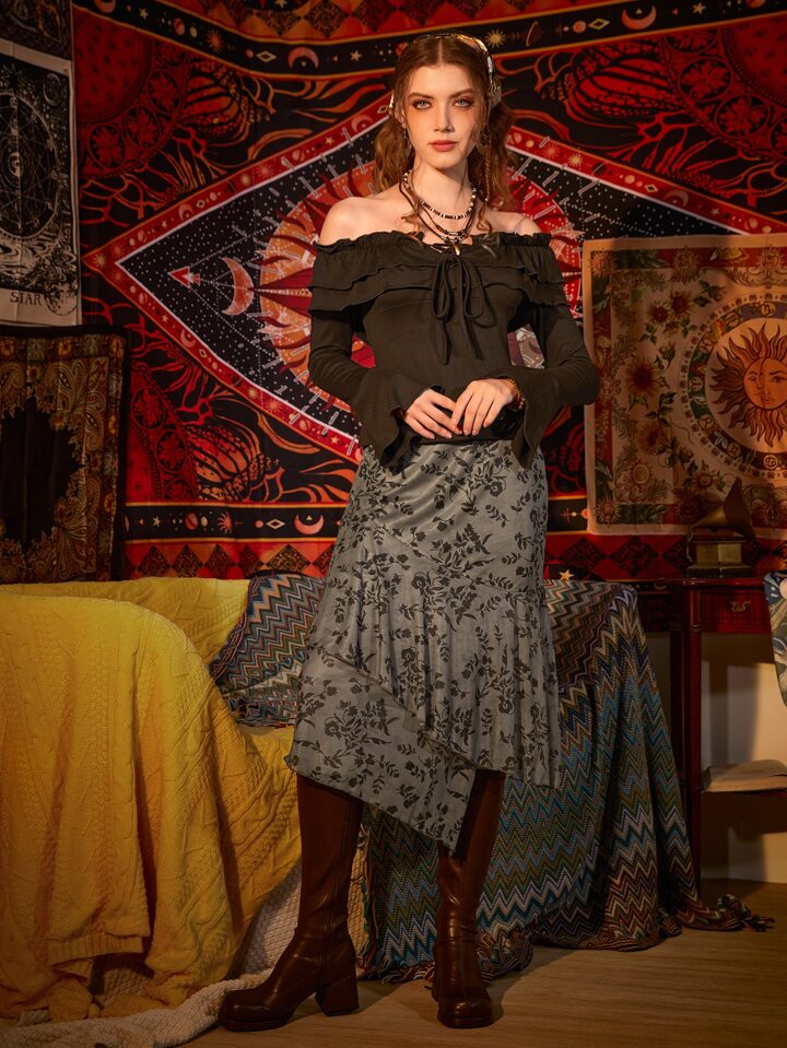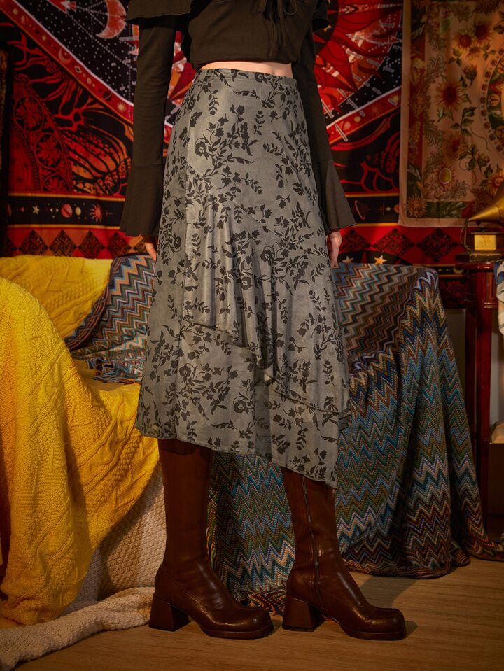 Rock mit Blume Muster, Rüschen