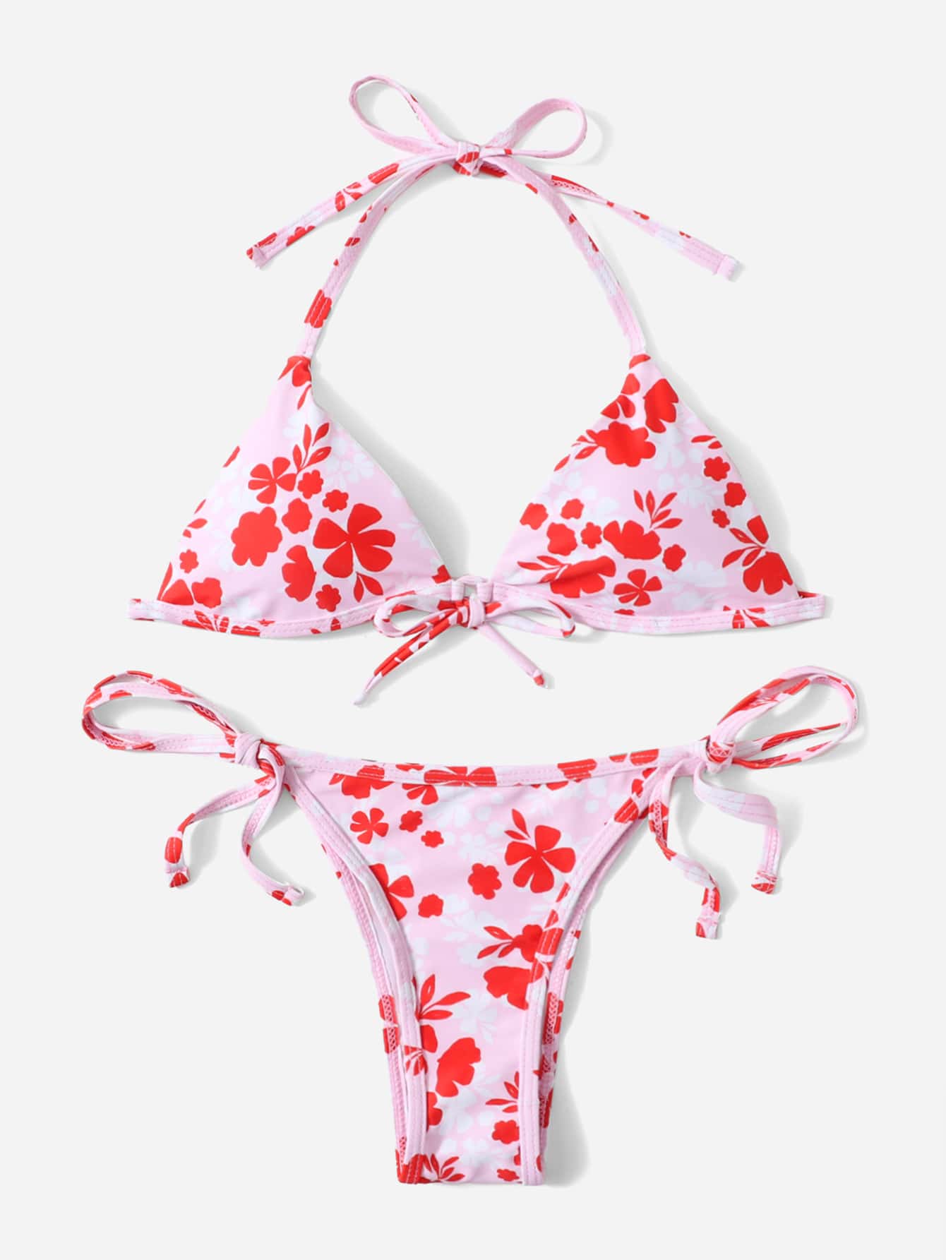 Triangel-bikini Mit Blumenmuster Und Neckholder Zum Binden An Der Seite