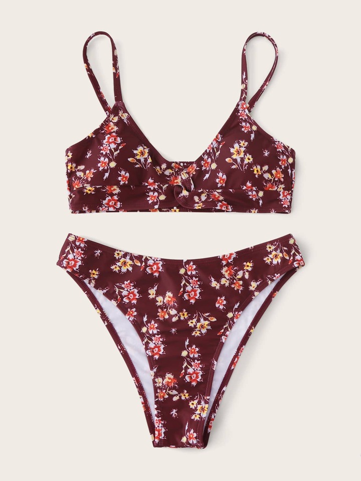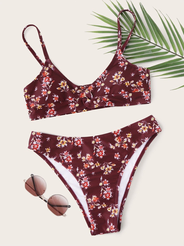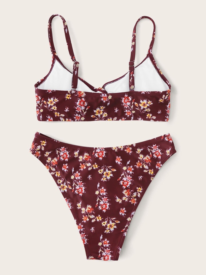 Blumiges Bikini-Set mit Twist-Design und hohem Schnitt für den Sommer am Strand