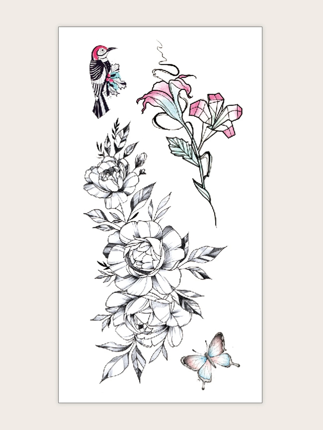 Blumenmuster Tätowierung Aufkleber 1 Blatt