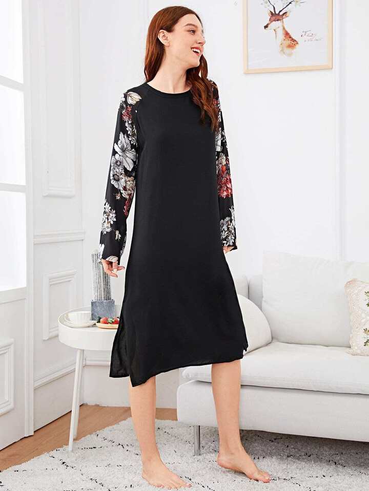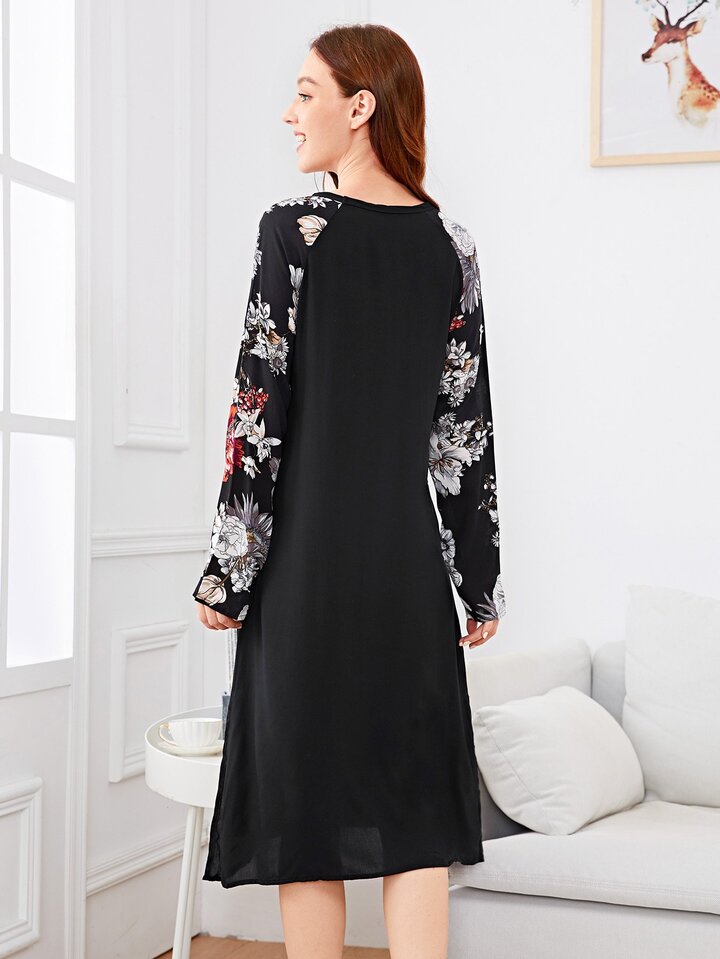 Nachtkleid mit Blumen Muster auf den Ärmeln