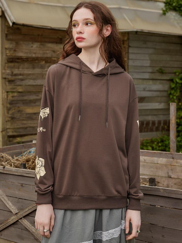 Folluther Hoodie mit Schmetterling Schädel Grafik, Drop Shoulder