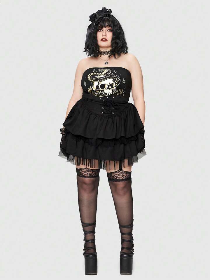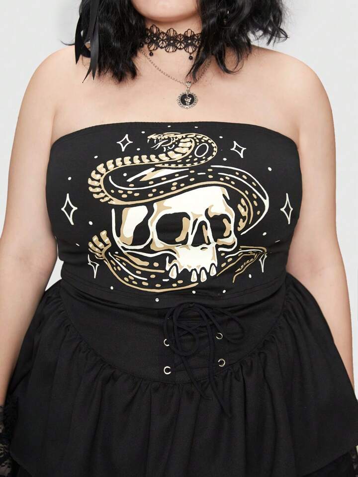 Foonmoneys Große Größe Tube Top mit Schädel Muster,