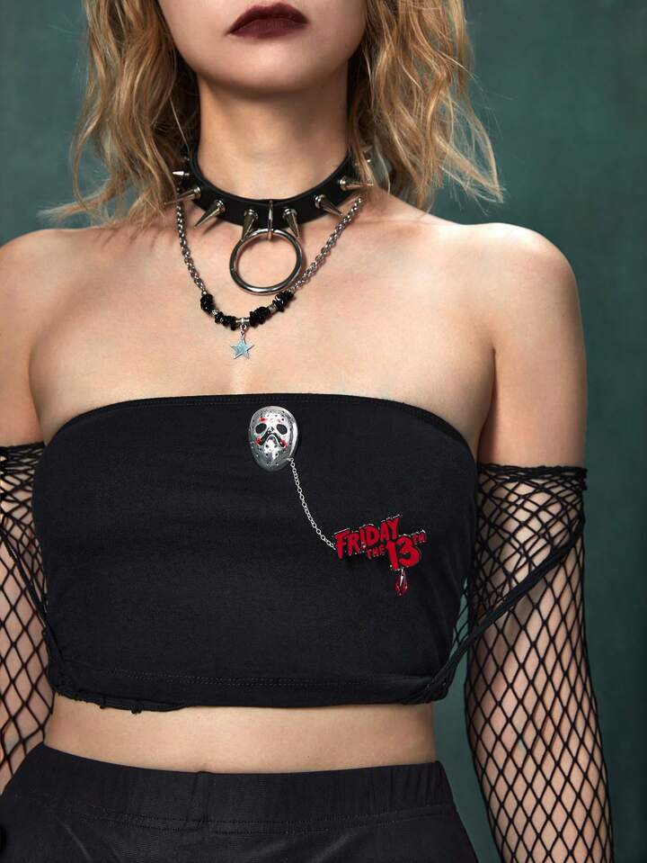 Friday the 13th X ROMWE 1 Stück Brosche Funky Zinklegierung, Buchstabe & Schädel Grafik, Für Frauen Für Tägliche Dekoration