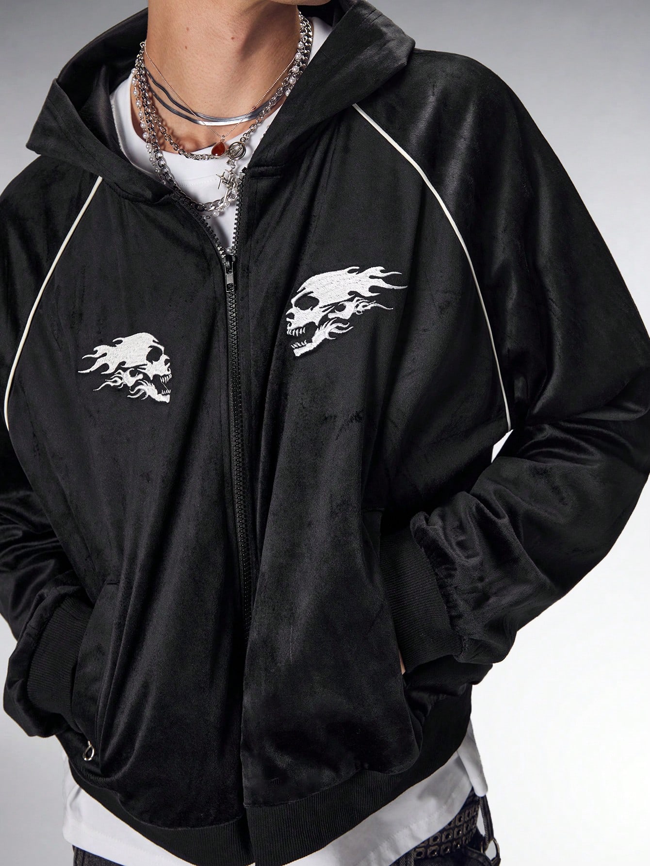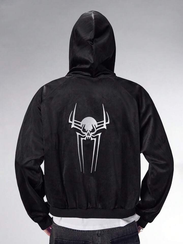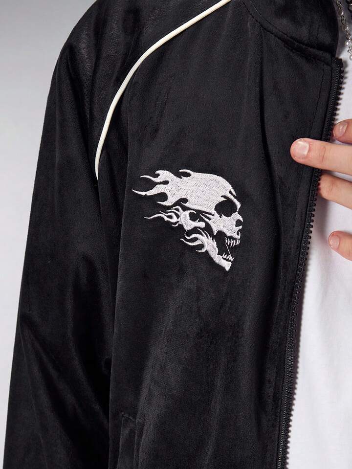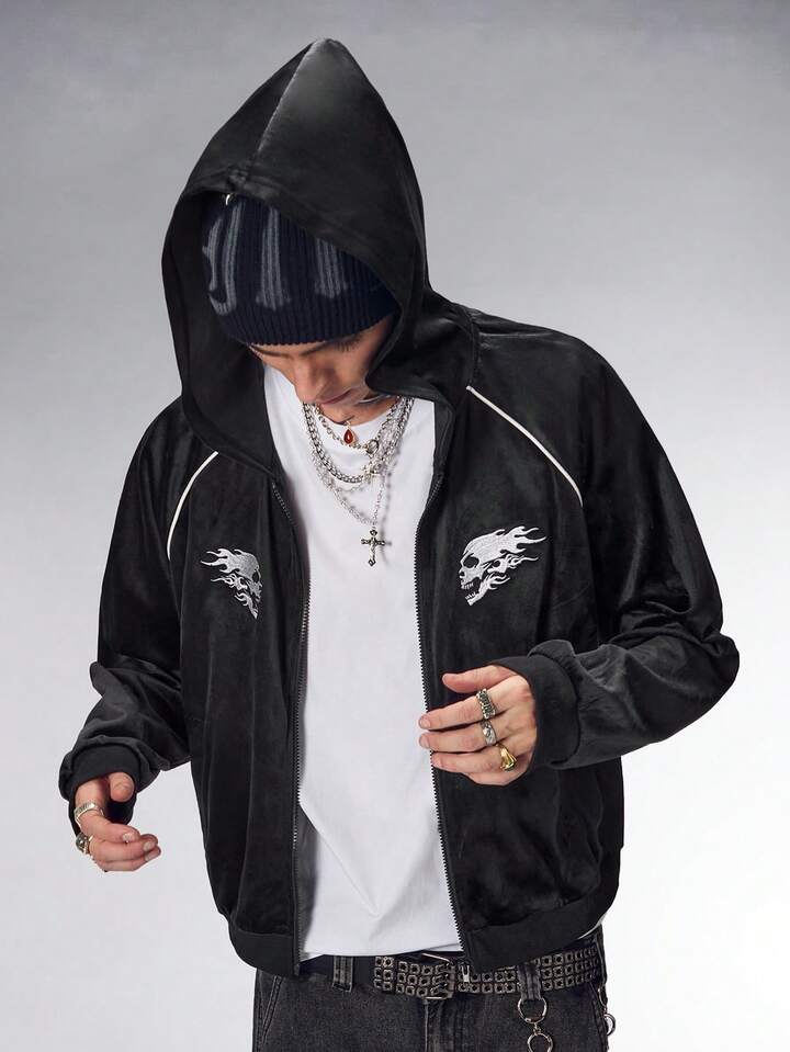 Friday the 13th X ROMWE Herren Kapuzenpullover mit Reißverschluss und Totenkopf-Muster, Herbst
