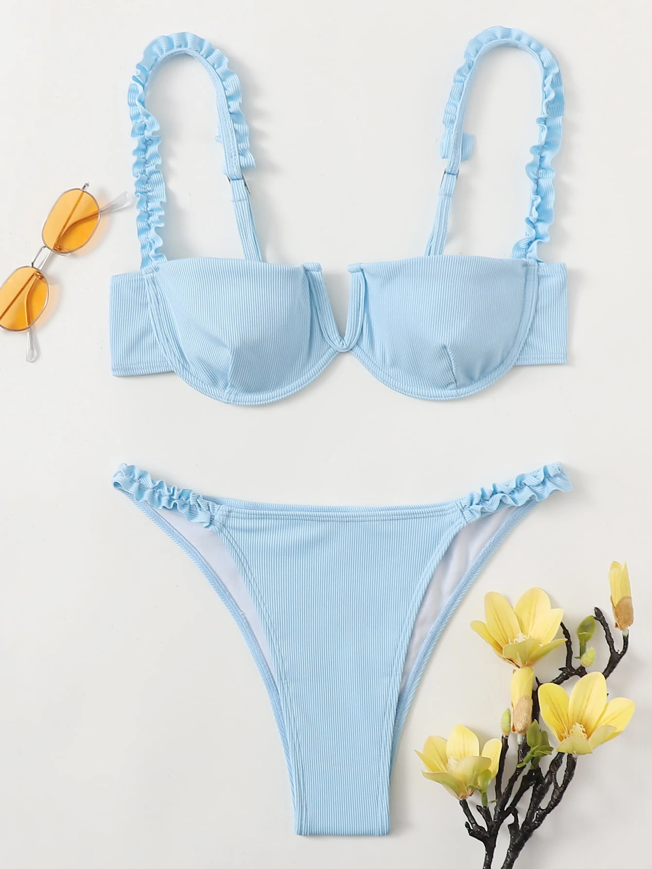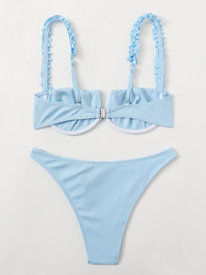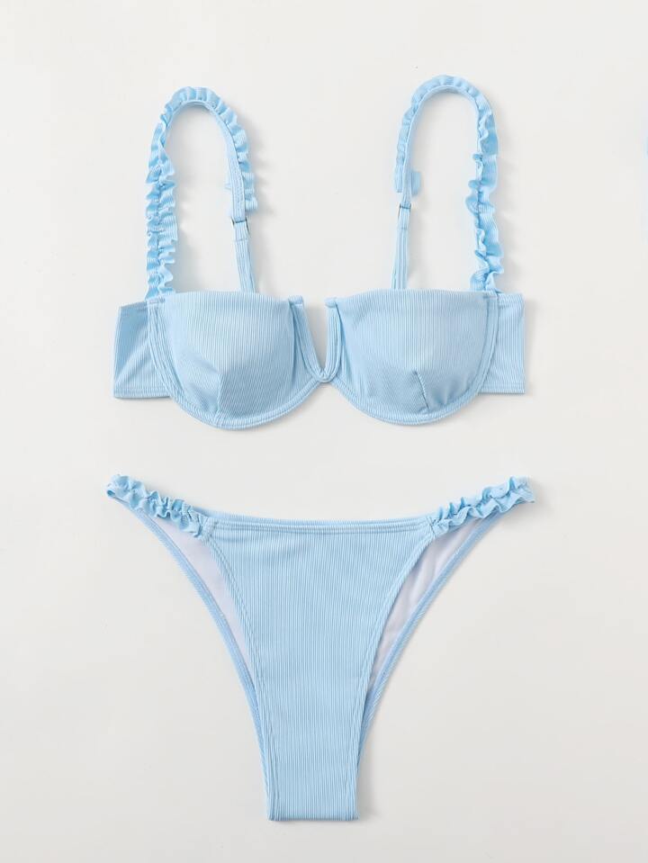 Rüschen Push-Up Bikini-Set für den Sommer am Strand