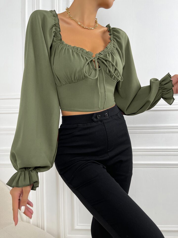 Milchmädchen Top mit Rüschenbesatz, Glockärmeln, Rüschen