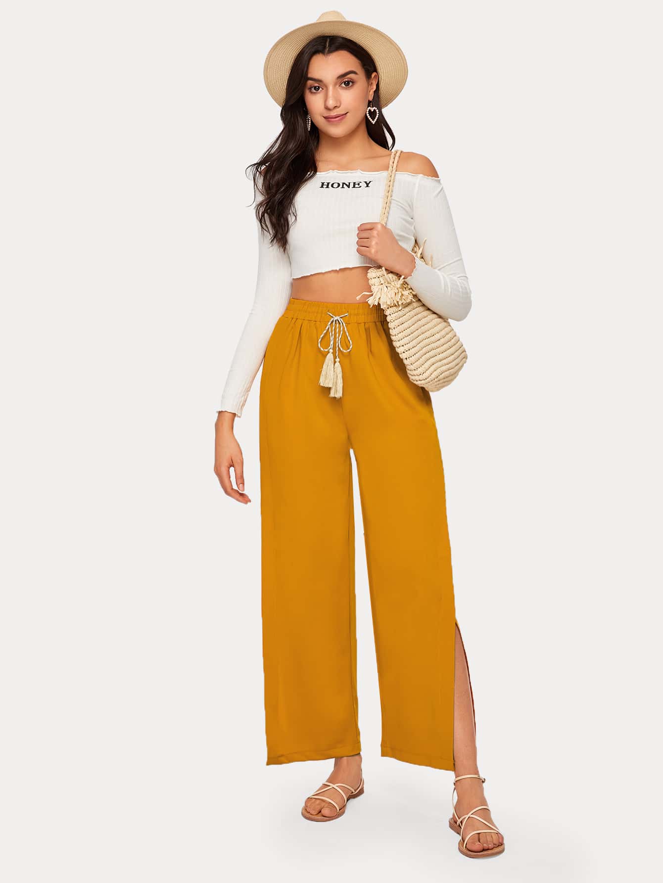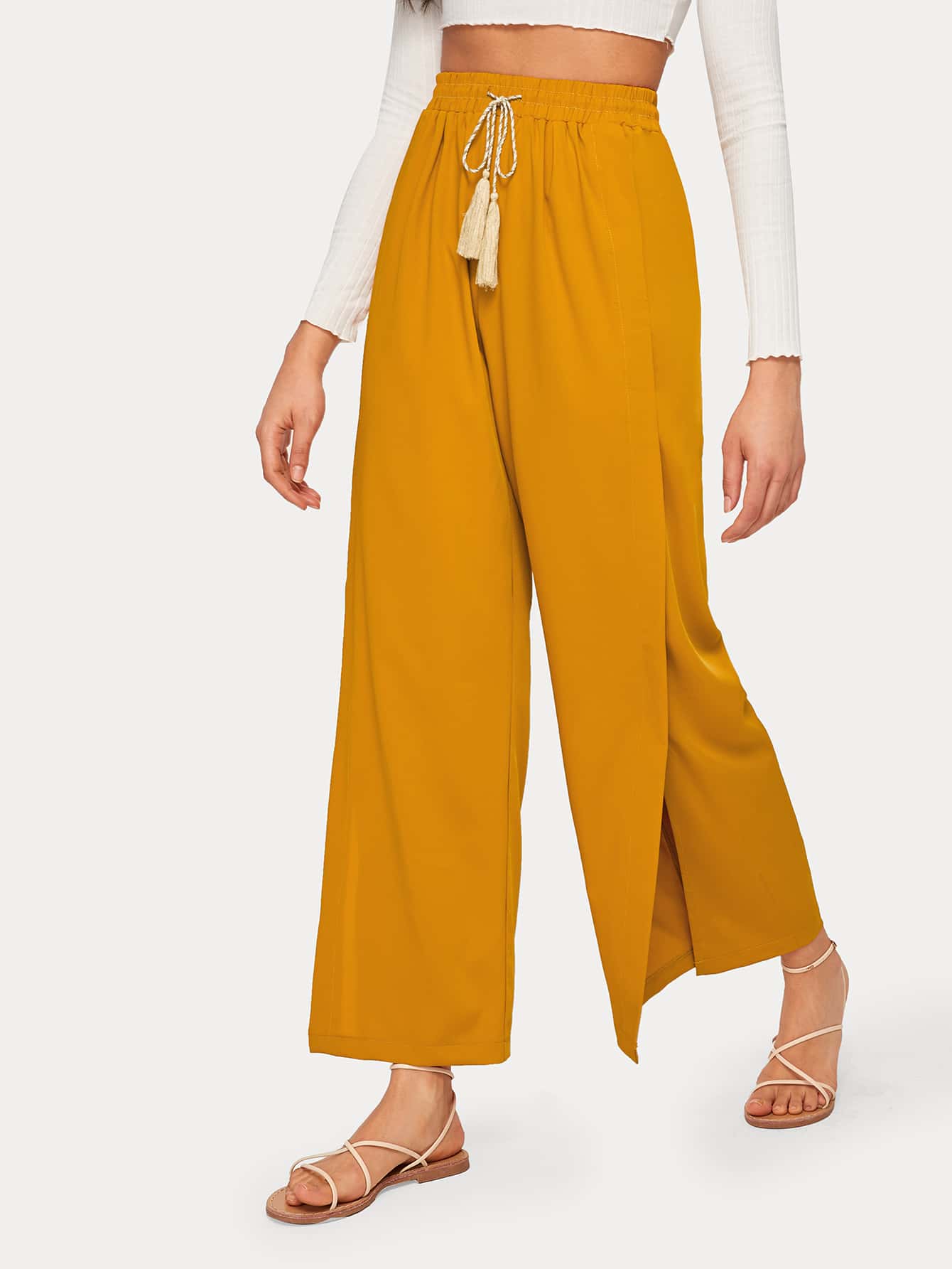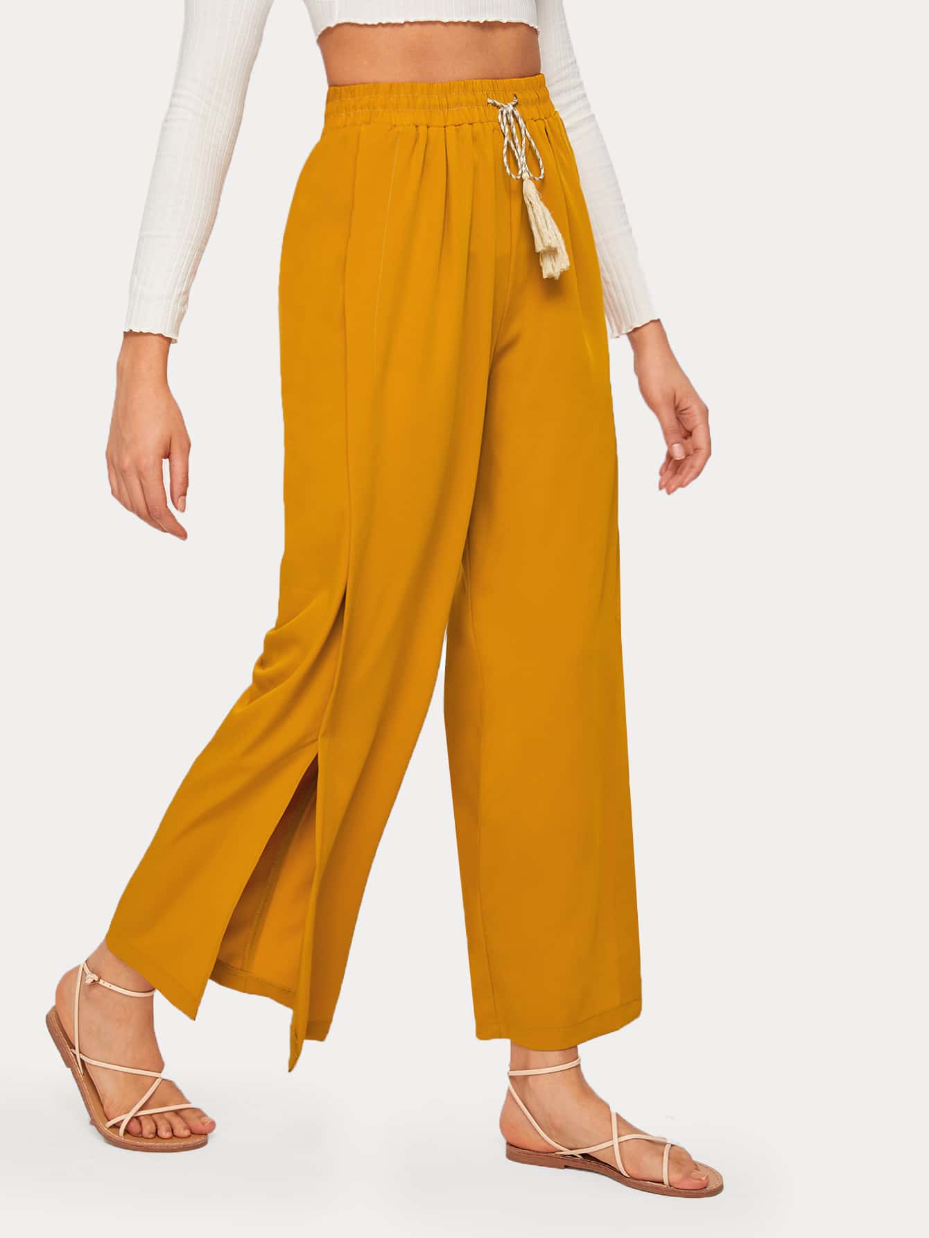 Palazzo Hose mit Fransen am Saum und Kordelzug