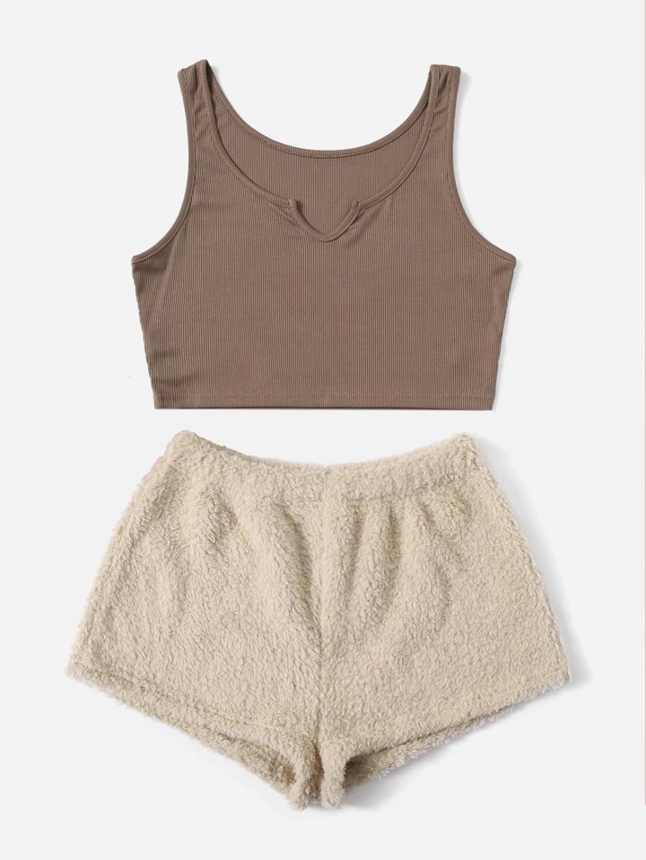 Pyjama Set mit fusselig eingekerbtem Kragen