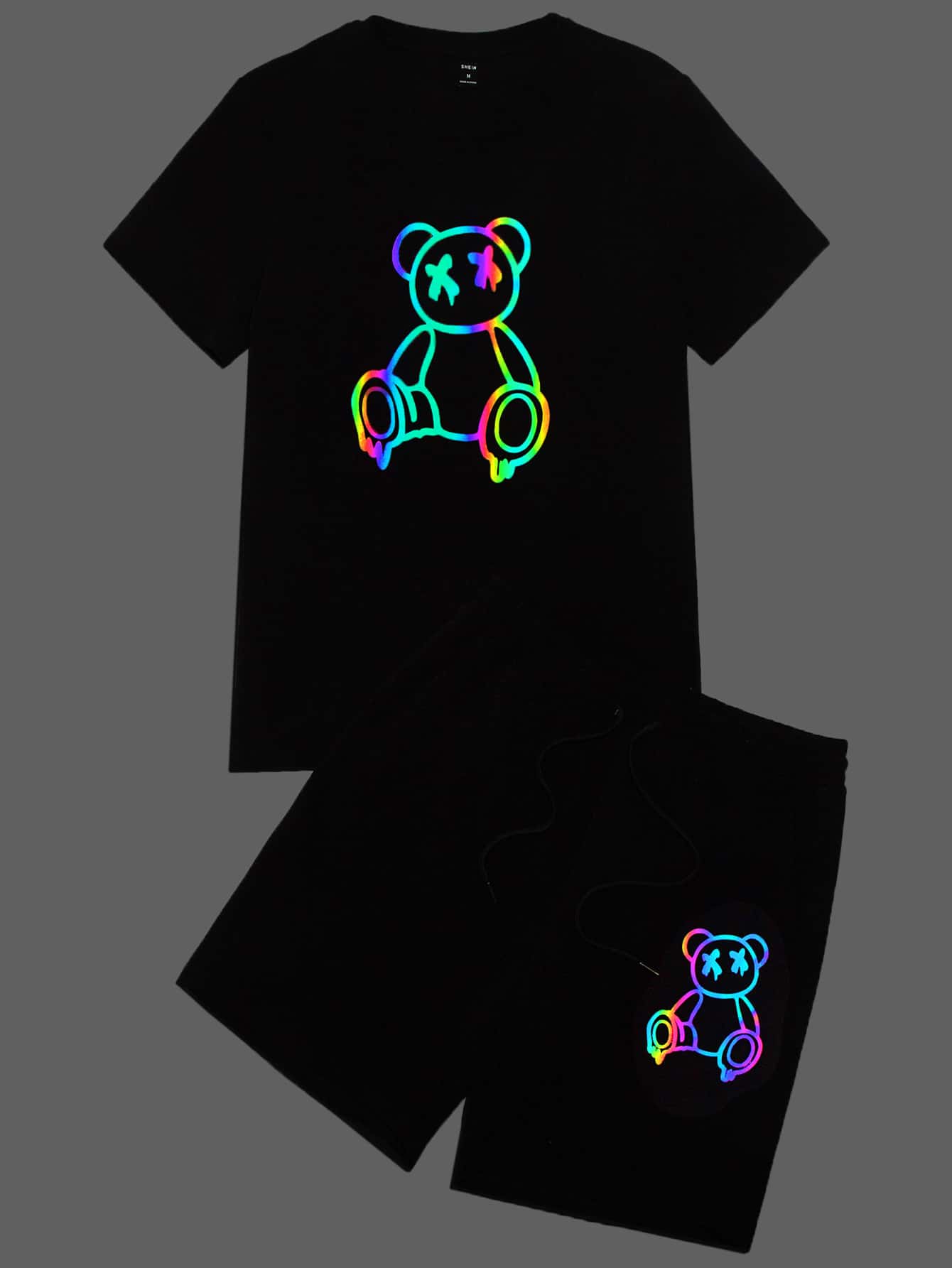 GENTILAND Männer T-Shirt mit reflektierend Bär Muster & Tunnelzug Shorts