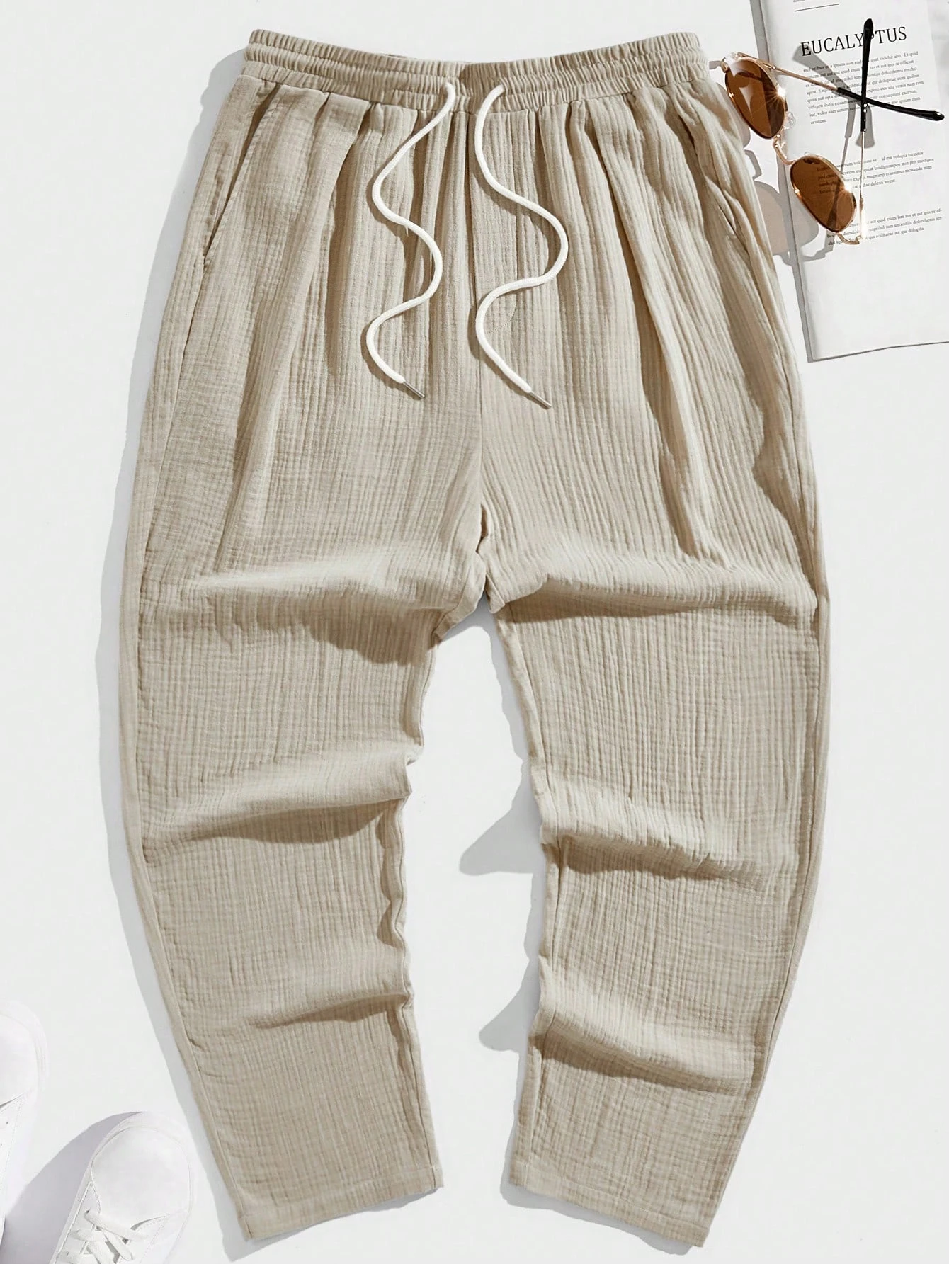 GENTILAND Herren Baumwolle Hose mit Kordelzug