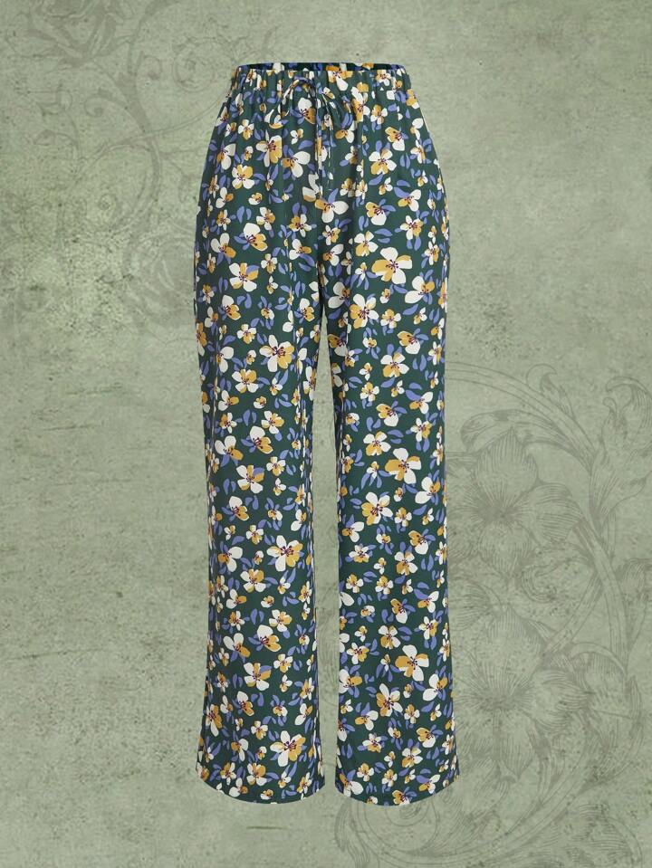 GIOIA TANG Urlaubs-Stil lässige Gerade-Bein Hose mit kleinem Blumenmuster