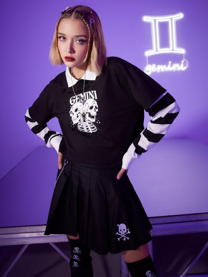 Gemini Sweatshirt mit 2 in 1 Streifen auf Ärmeln, Buchstabe Schädel Grafik