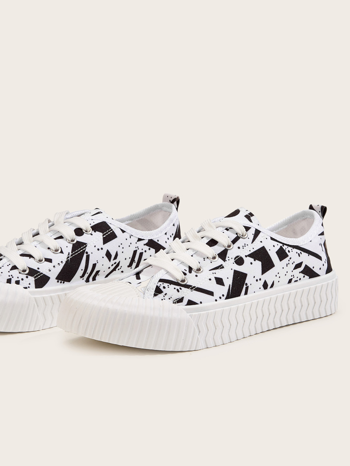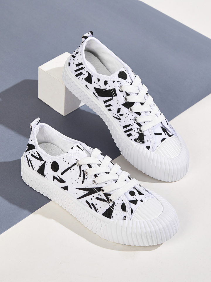 Segeltuch Sneakers mit geometrischem Muster und niedrigem Schaft