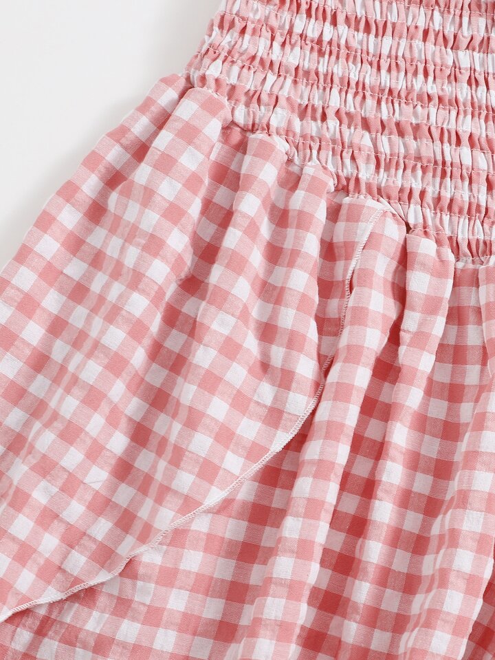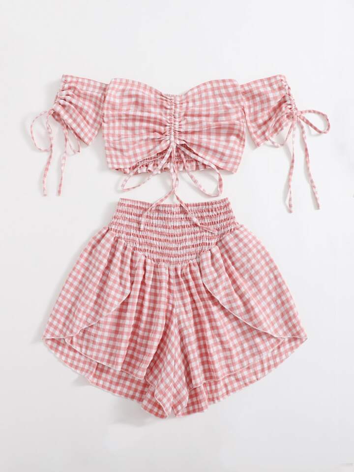 Crop Top mit Gingham Muster und Rüschen & Shorts