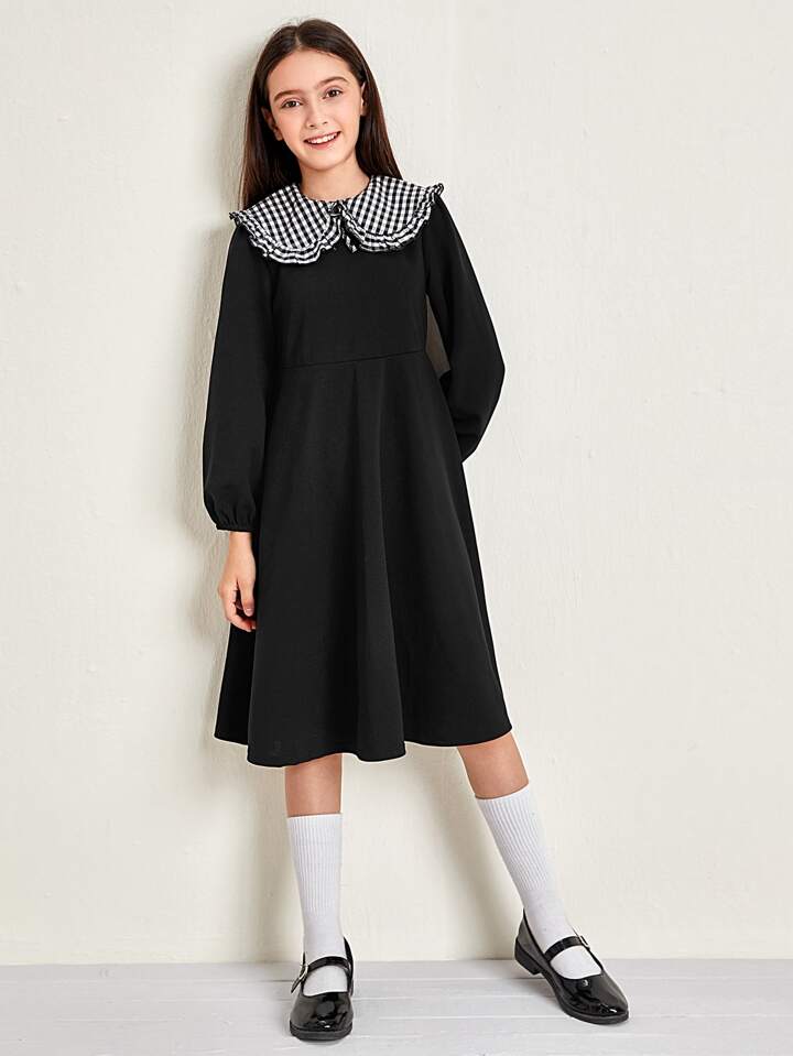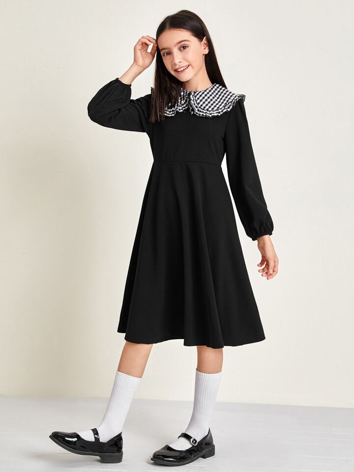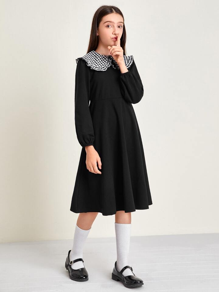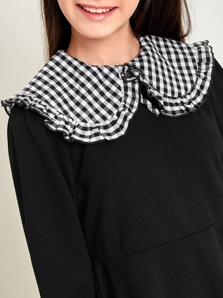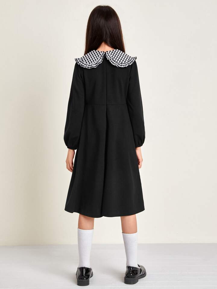 Kleid mit Rüschenbesatz, Karo Muster und Peter Pan Kragen