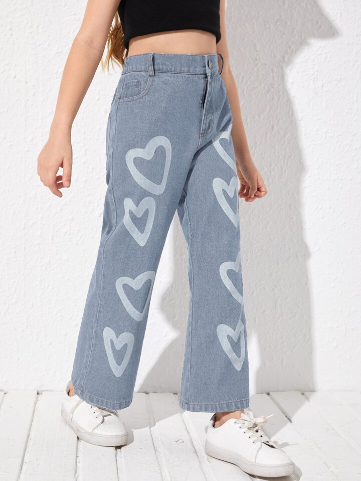 Mädchen Lässig Denim mit Herzen Muster, mit einer Prise kindlicher und Süß Note, klassischer Denim-Stil mit bequemem Stoff, vielseitig und modisch, einfach mit verschiedenen Oberteilen zu kombinieren, geeignet für den täglichen Gebrauch, Outdoor-Aktivitäten oder Familientreffen, perfekt für Frühlings- und Sommersaisons.