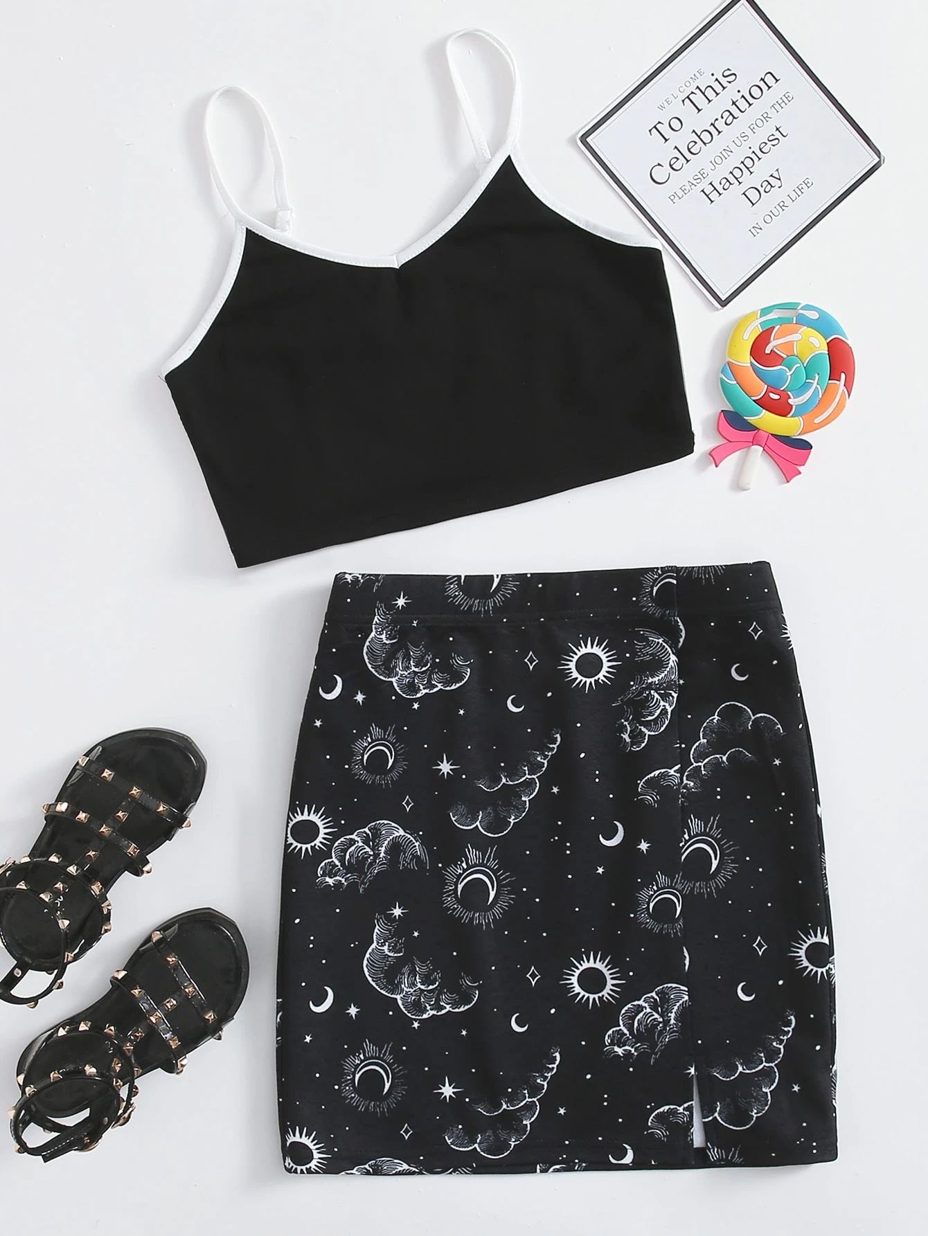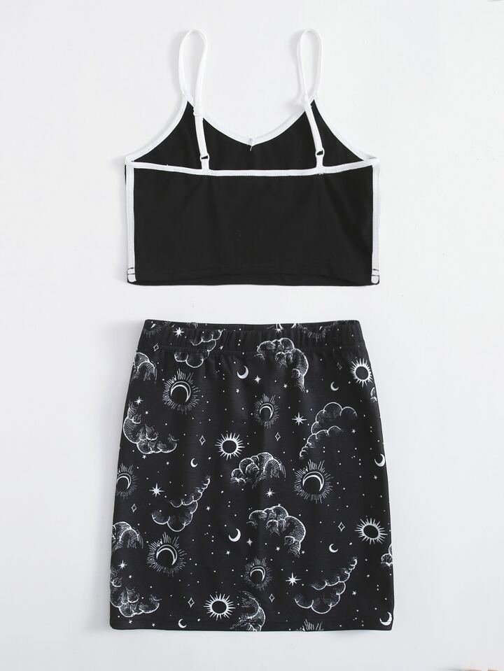 Crop Cami Top & Rock mit Galaxie Muster Set