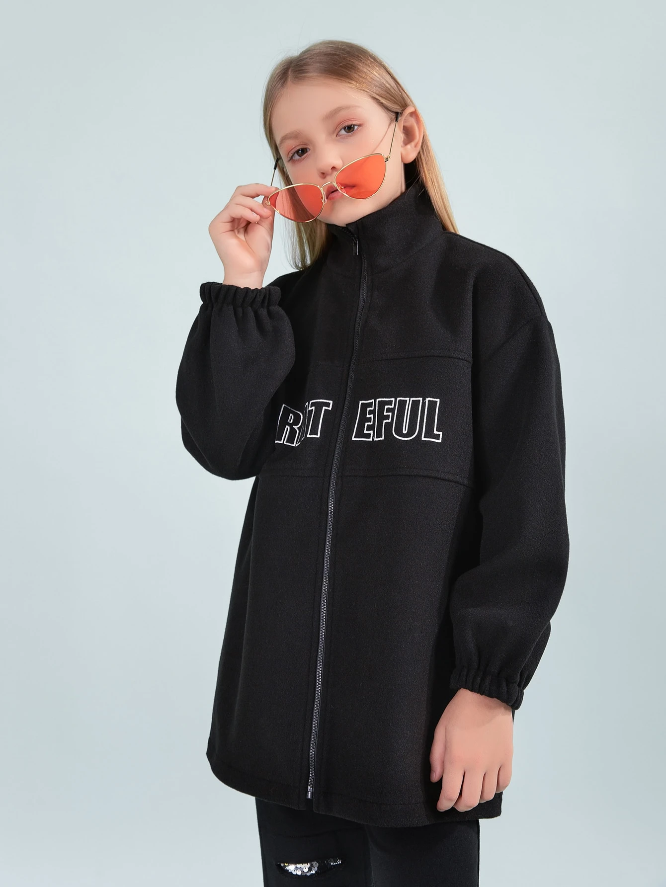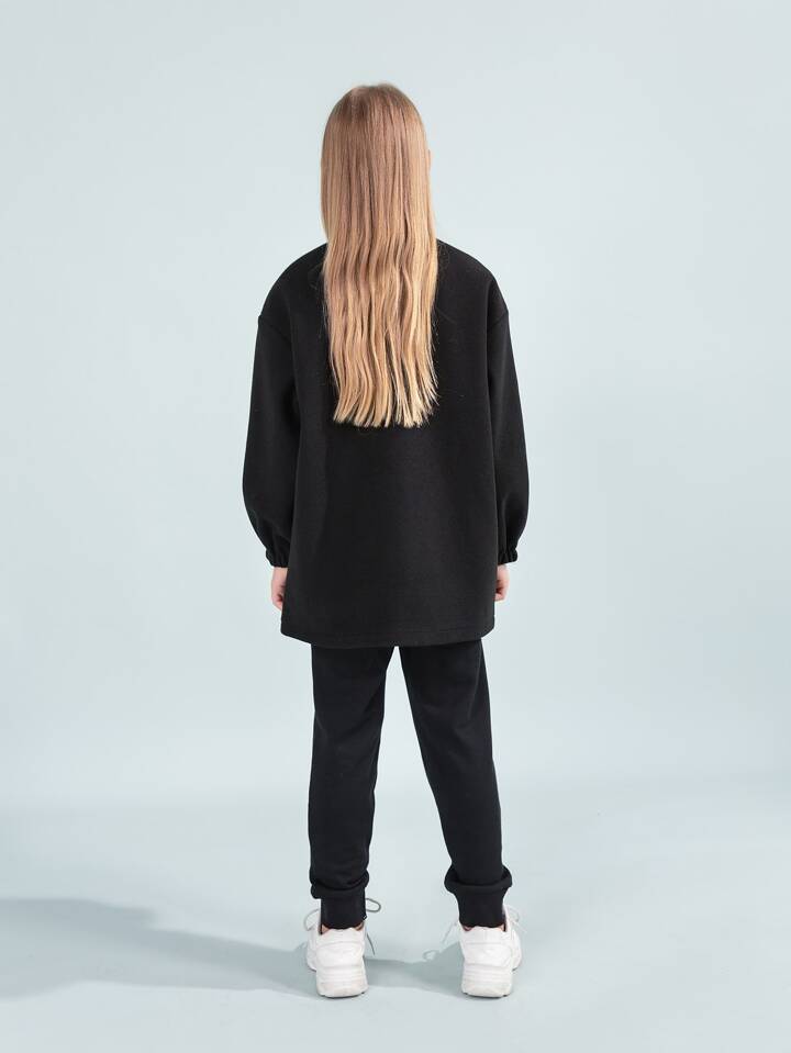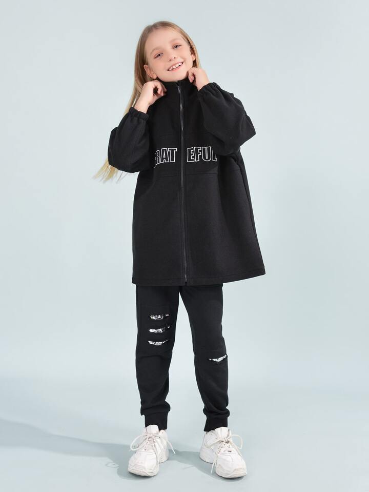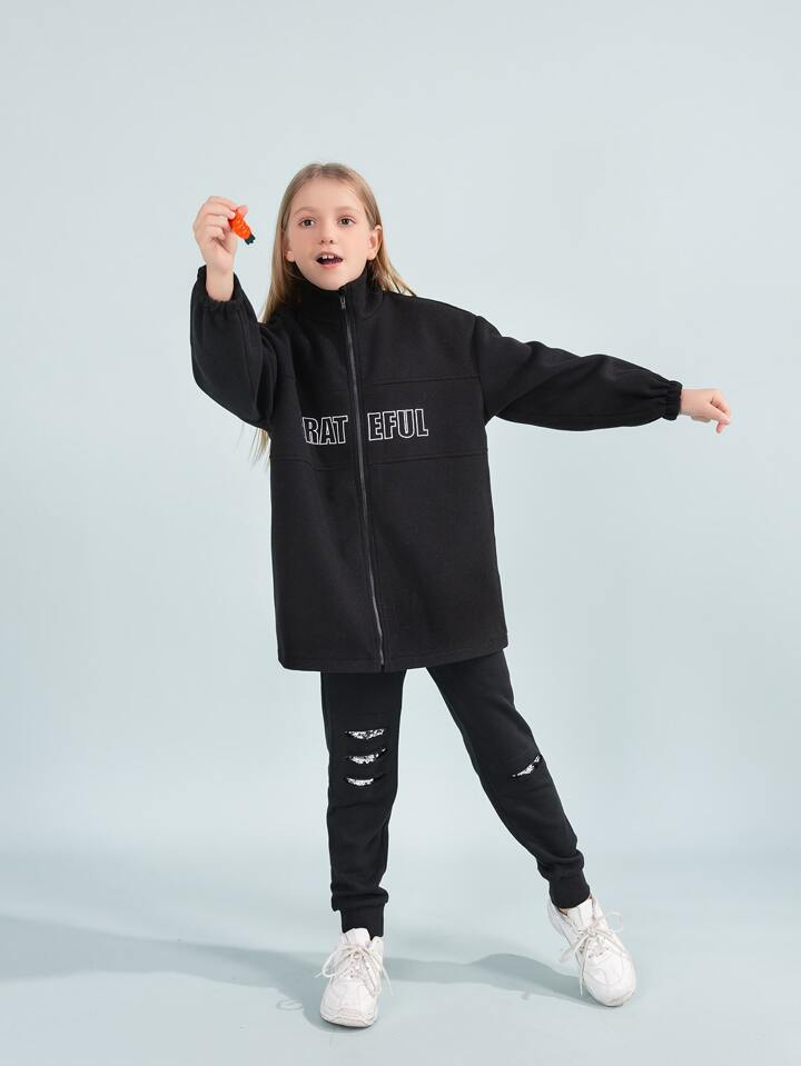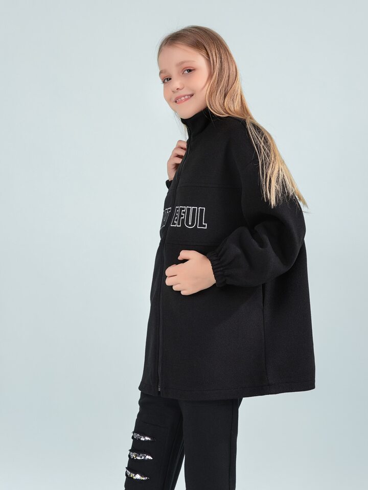Mädchen Mantel mit Drop Shoulder Buchstaben Stickerei