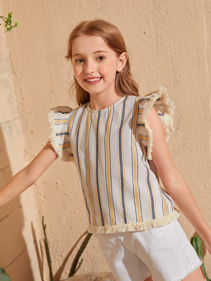 Gestreiftes Top mit Fransen und Rüschenarmlöchern