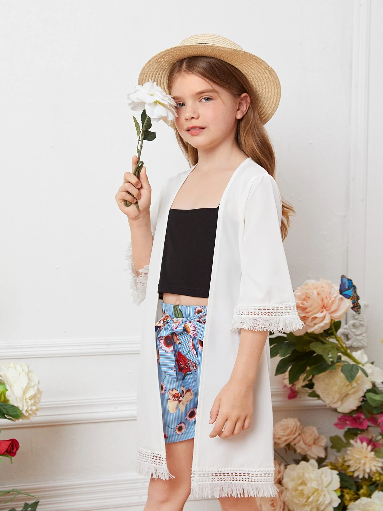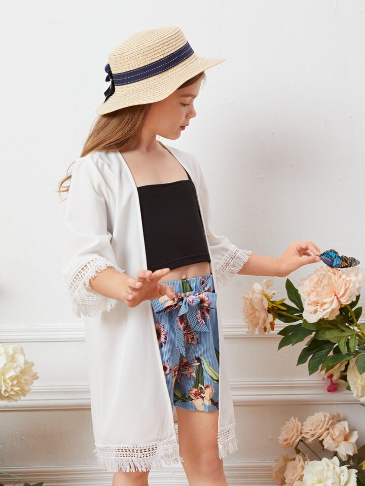 Fransen Einfarbig Mädchen Kimono
