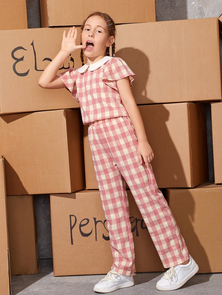 Top mit Karo Muster und übertriebenen Ärmeln & Hose