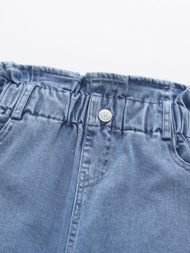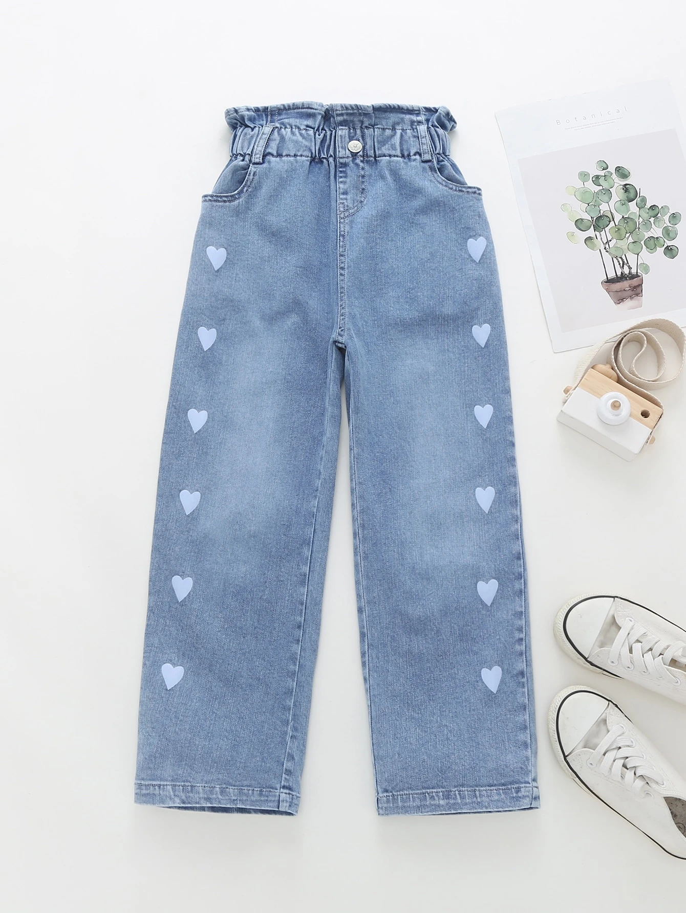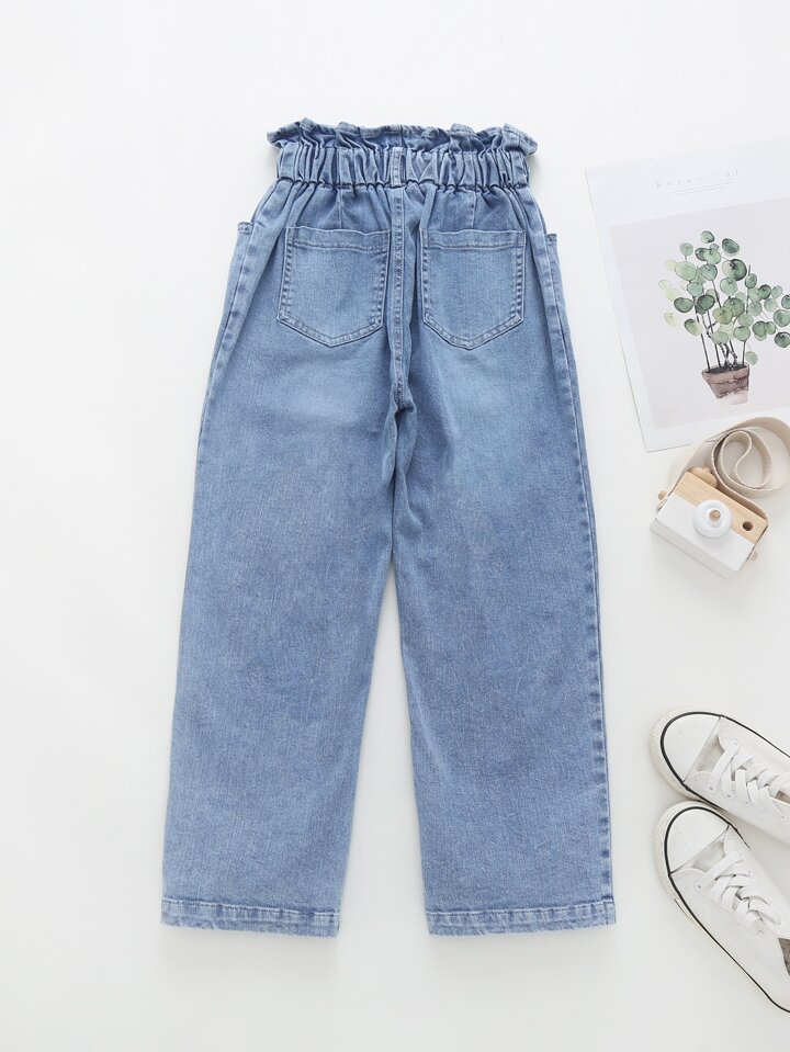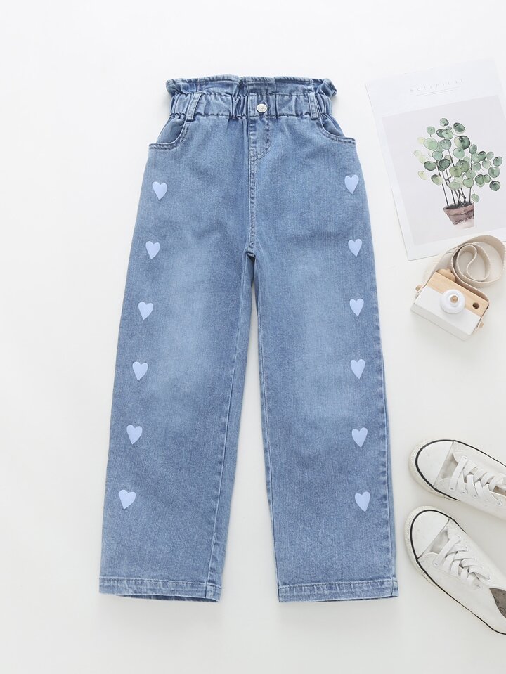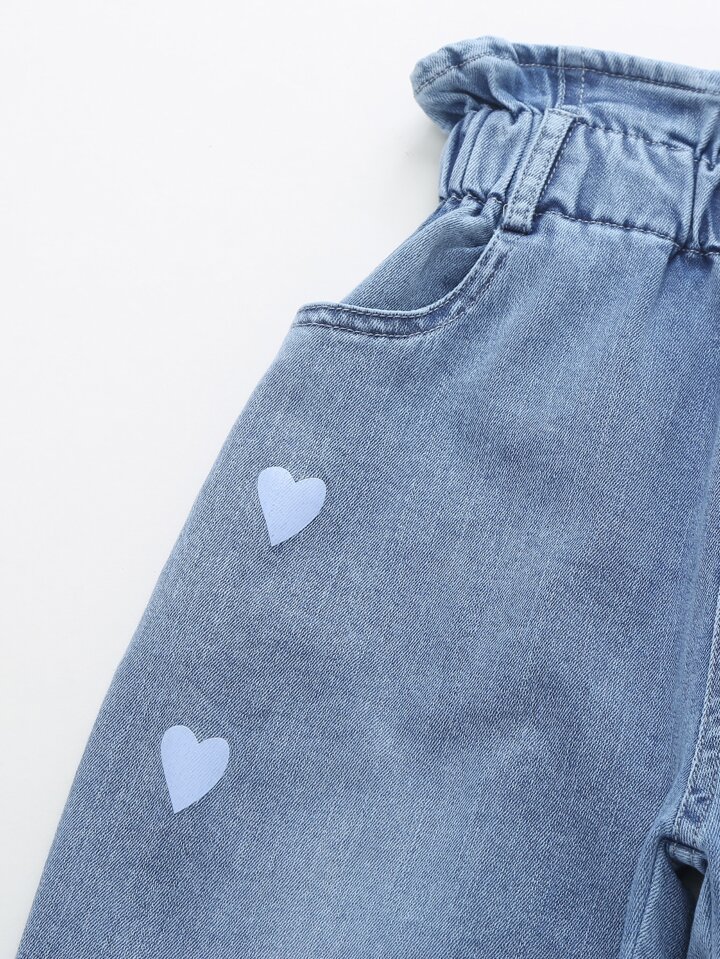 Mädchen Jeans mit Herzen Muster und Papiertasche-Taille
