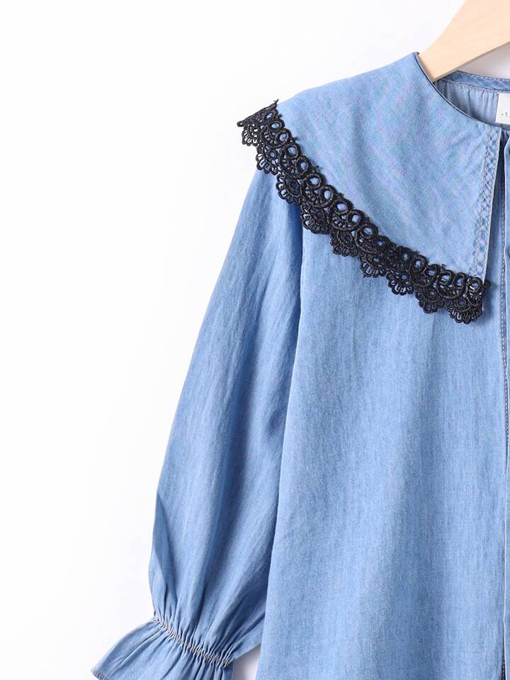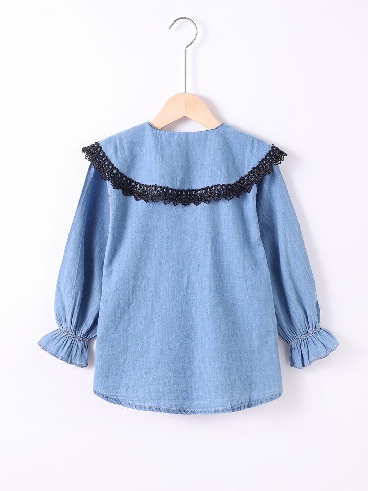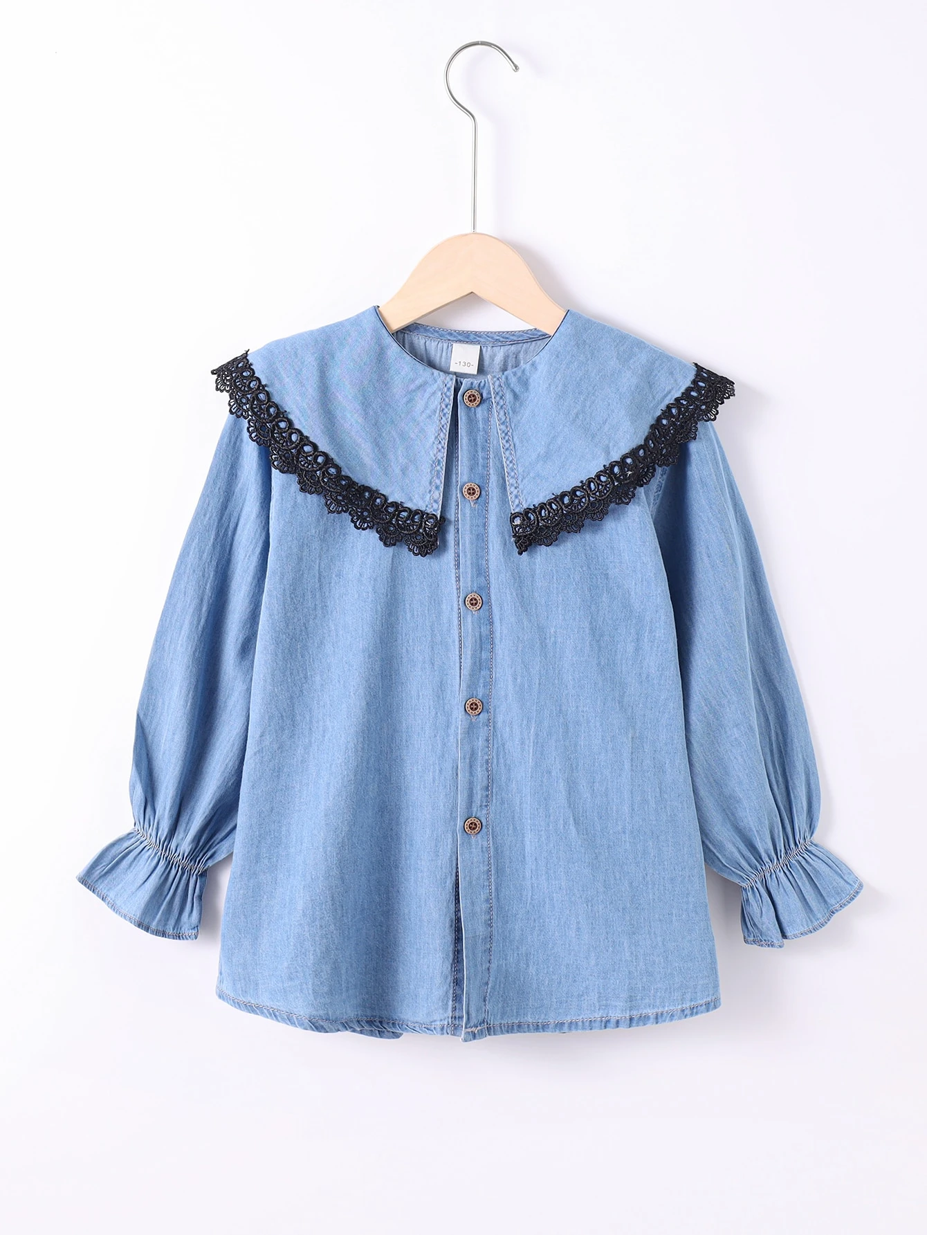 Mädchen Jeansbluse mit Spitzenbesatz und Statement Kragen