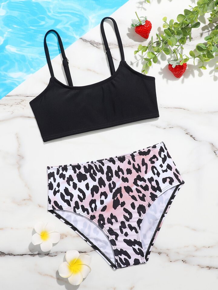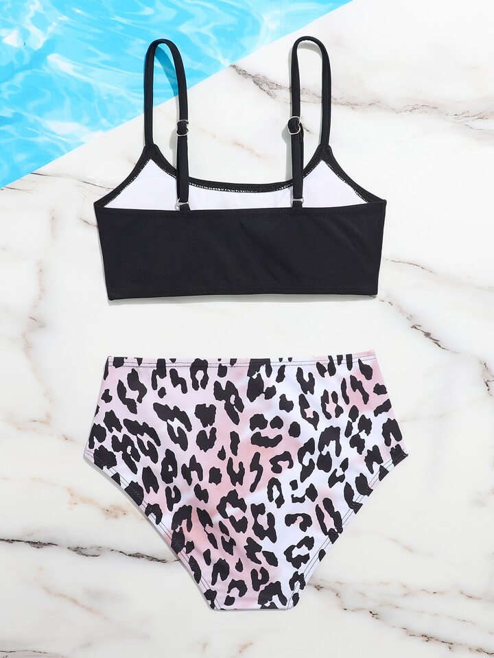 Tween-Mädchen Leoparden Muster Bikini-Set mit hoher Taille für Sommer und Strand
