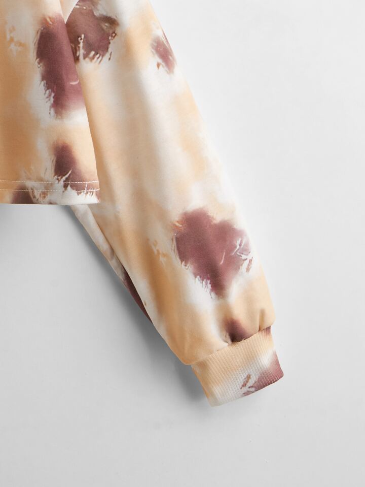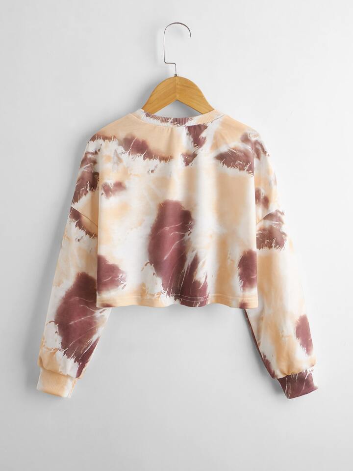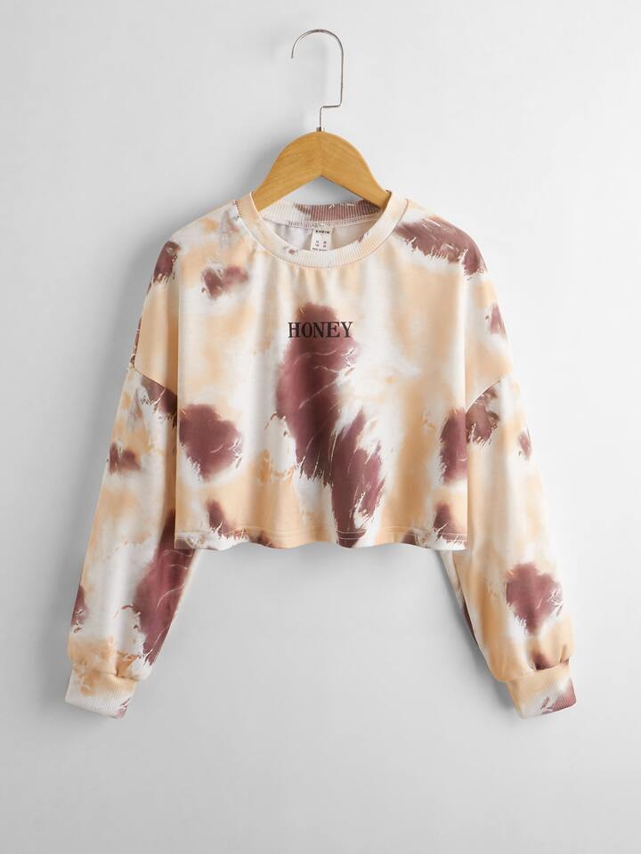 Mädchen Drop Shoulder Pullover mit Buchstaben Grafik und Batik