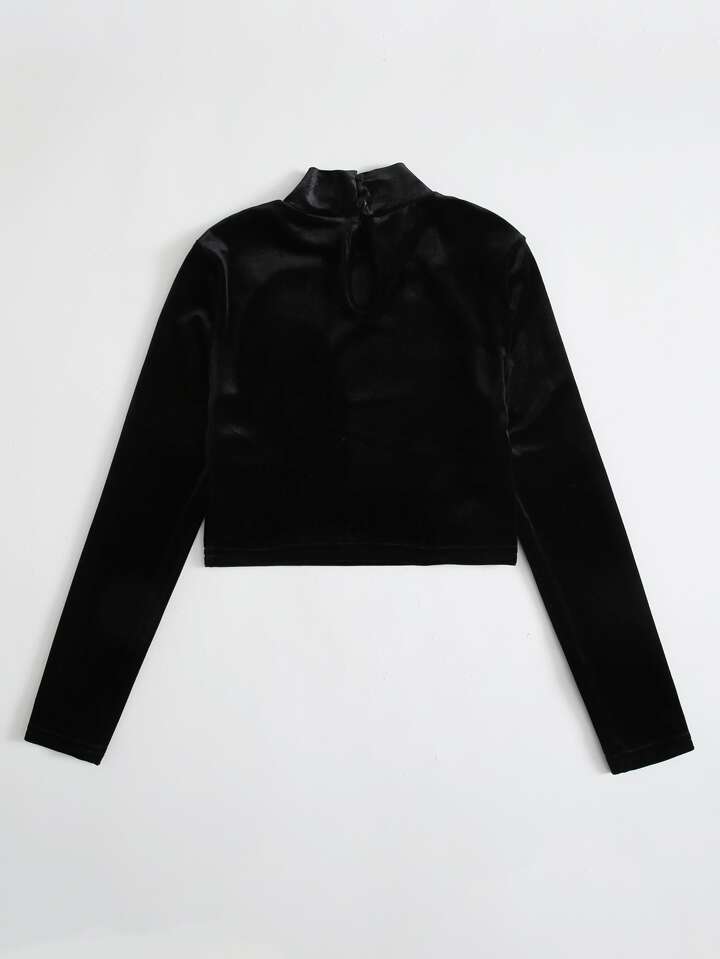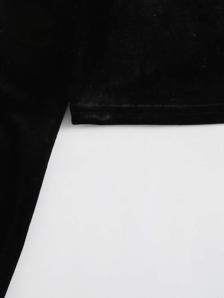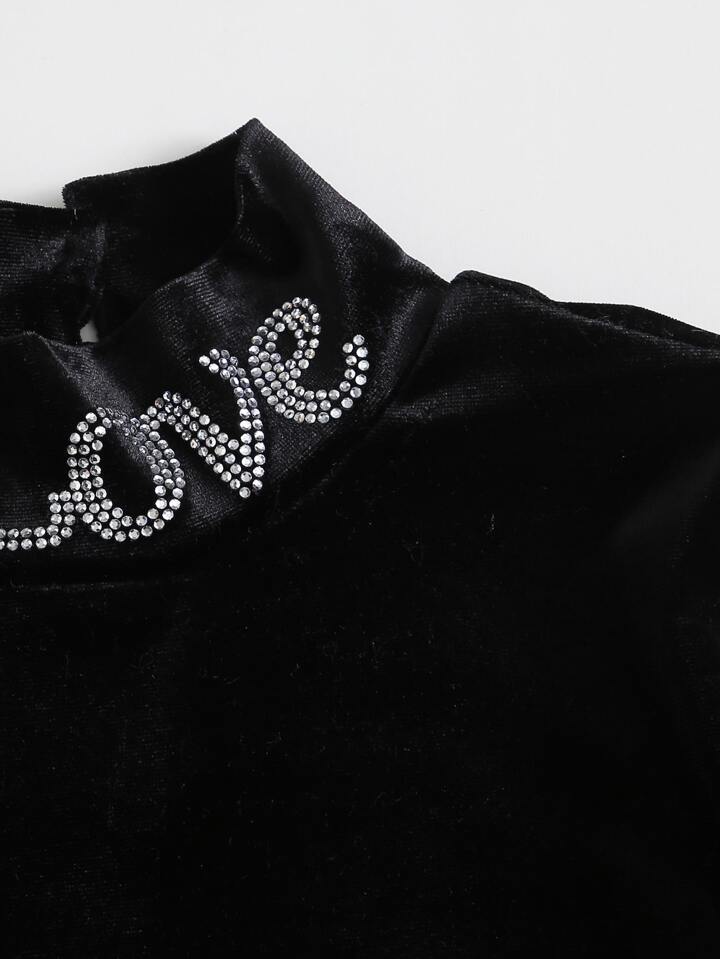 Samt T-Shirt mit Strass Dekor und Buchstaben Flicken