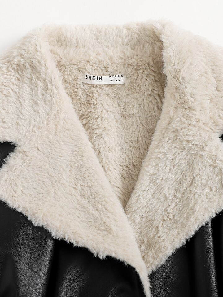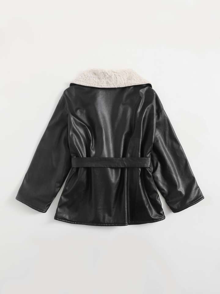 PU Leder Mantel mit Gürtel und Teddy Futter