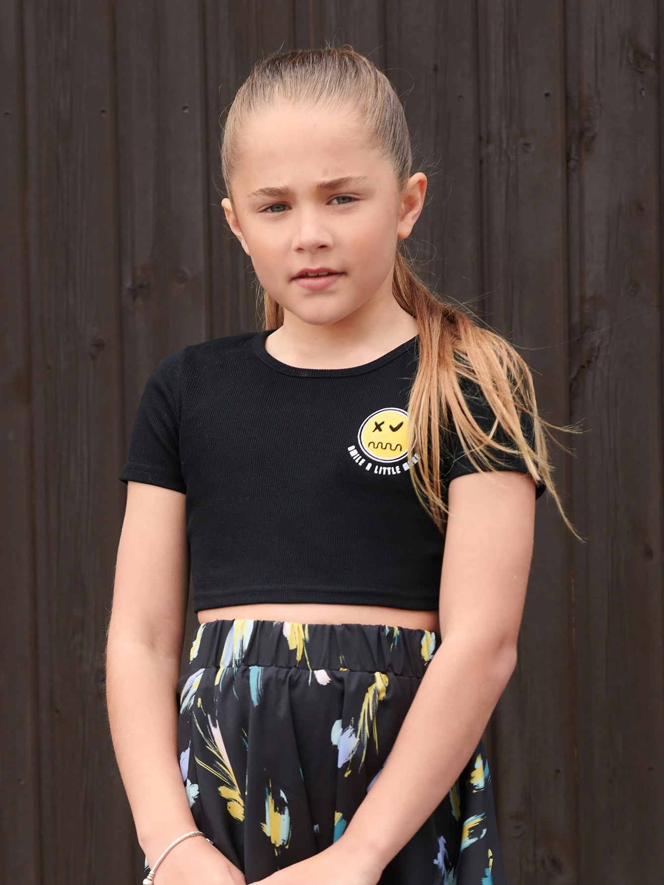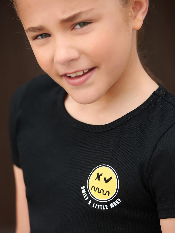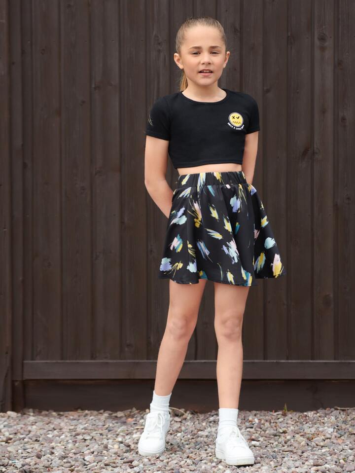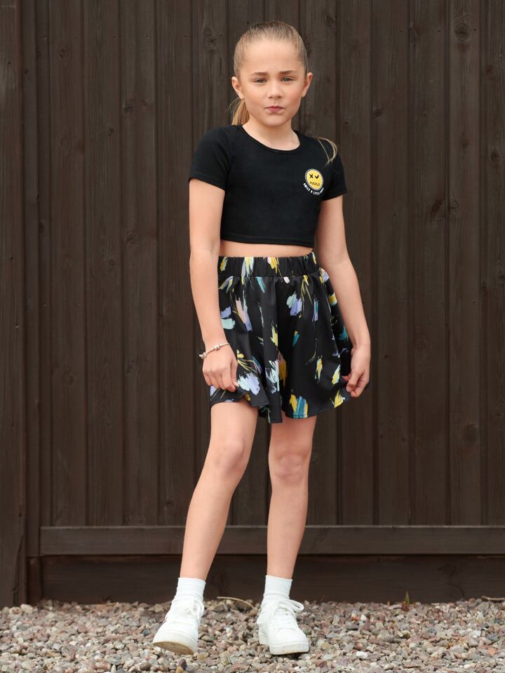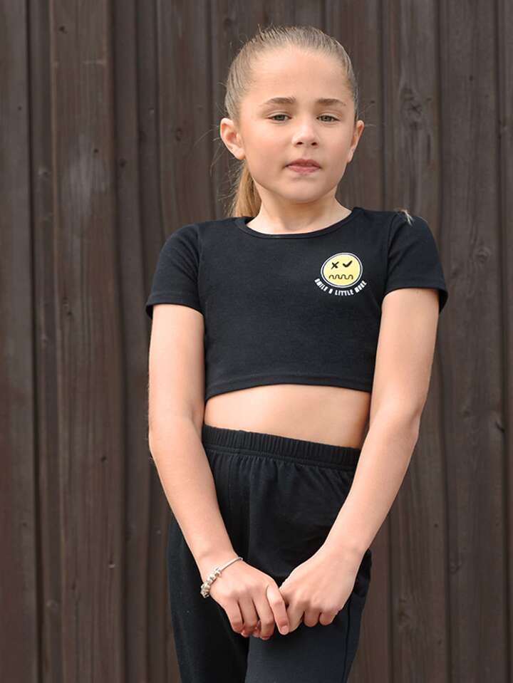 Crop T-Shirt mit Buchstaben & Cartoon Grafik