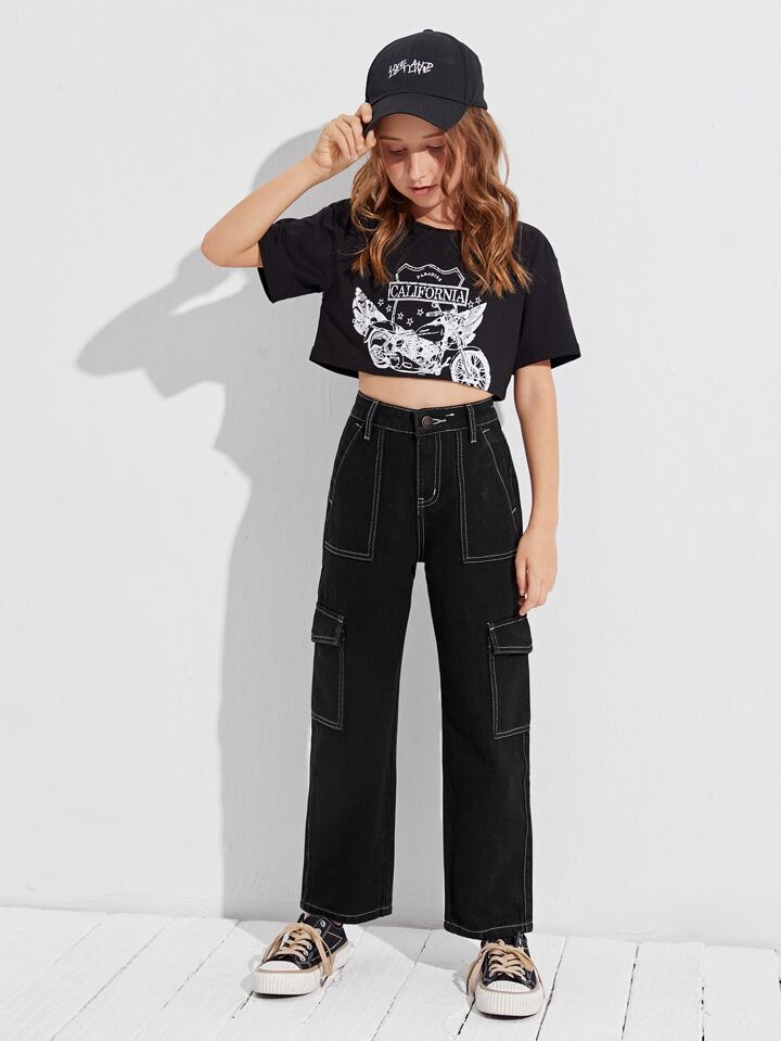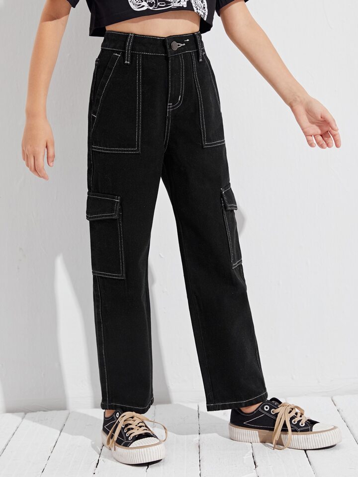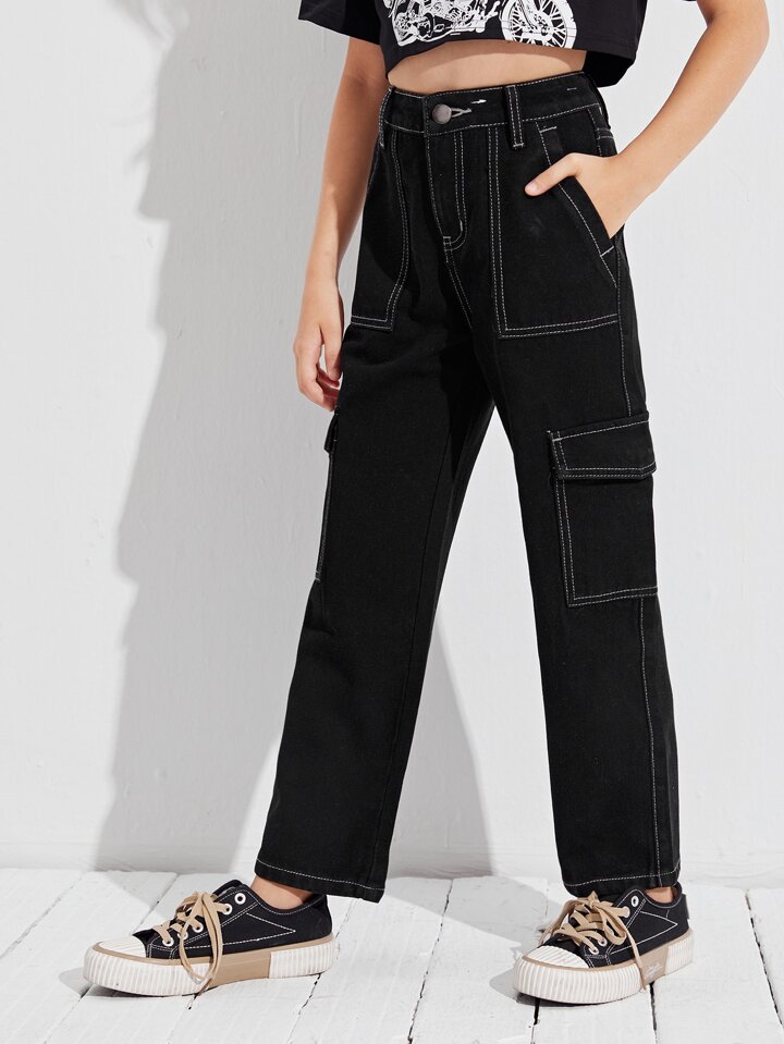 Jeans mit Reißverschluss, Kontrast-Stich und Taschen Klappen