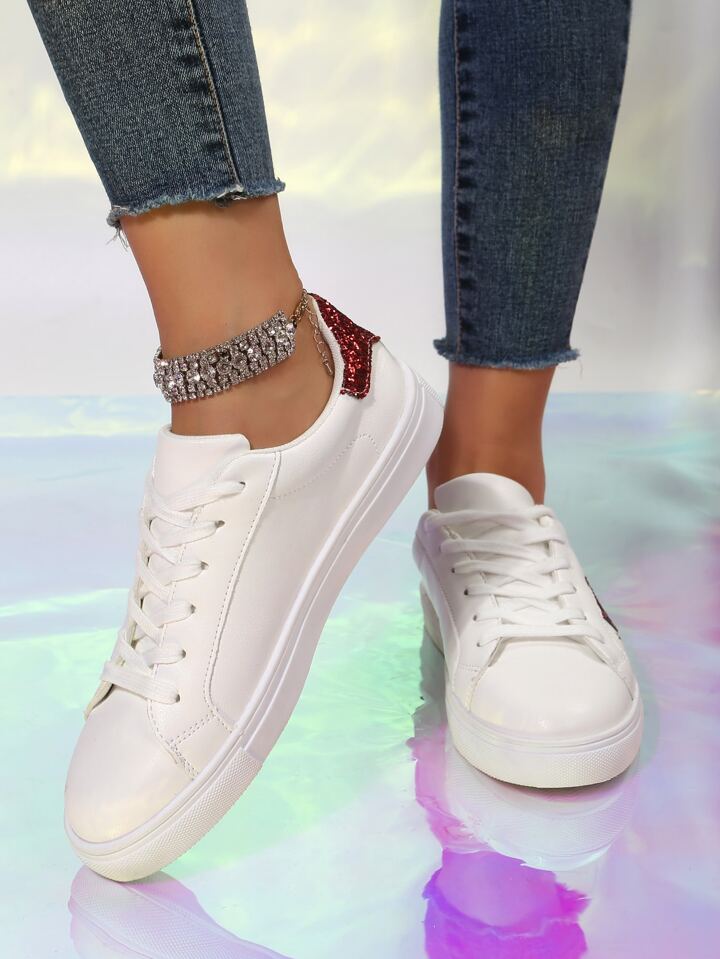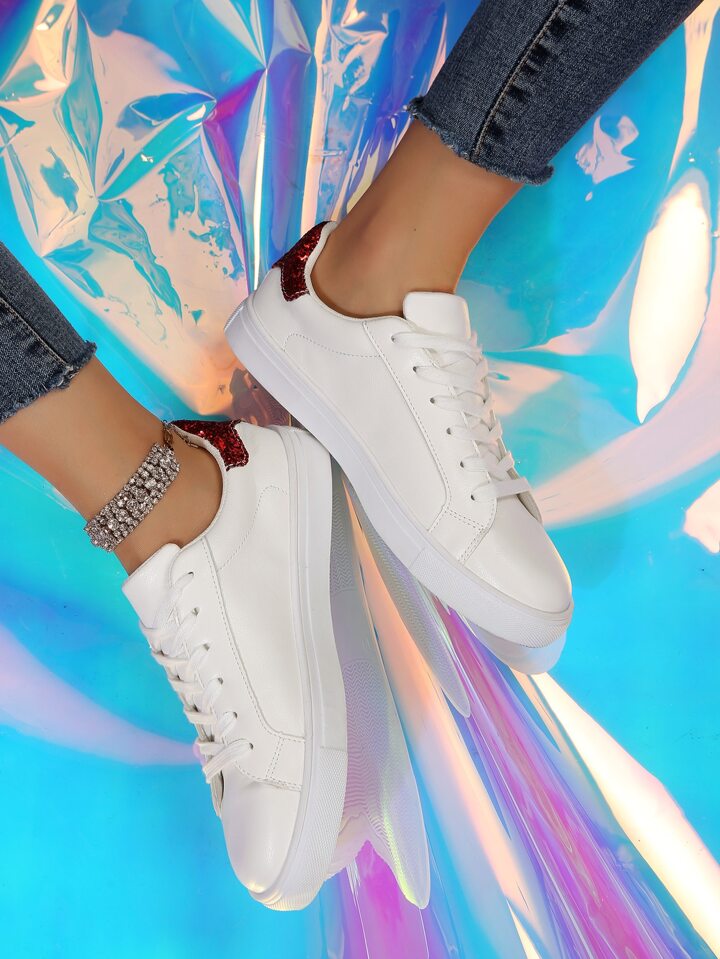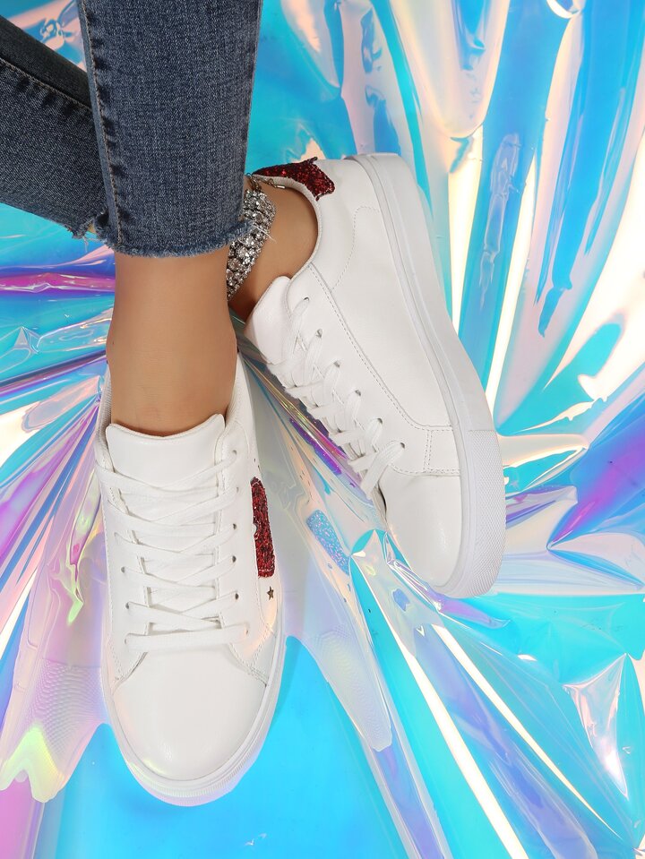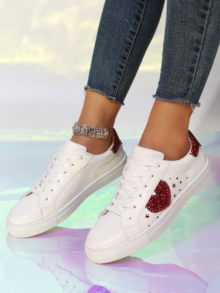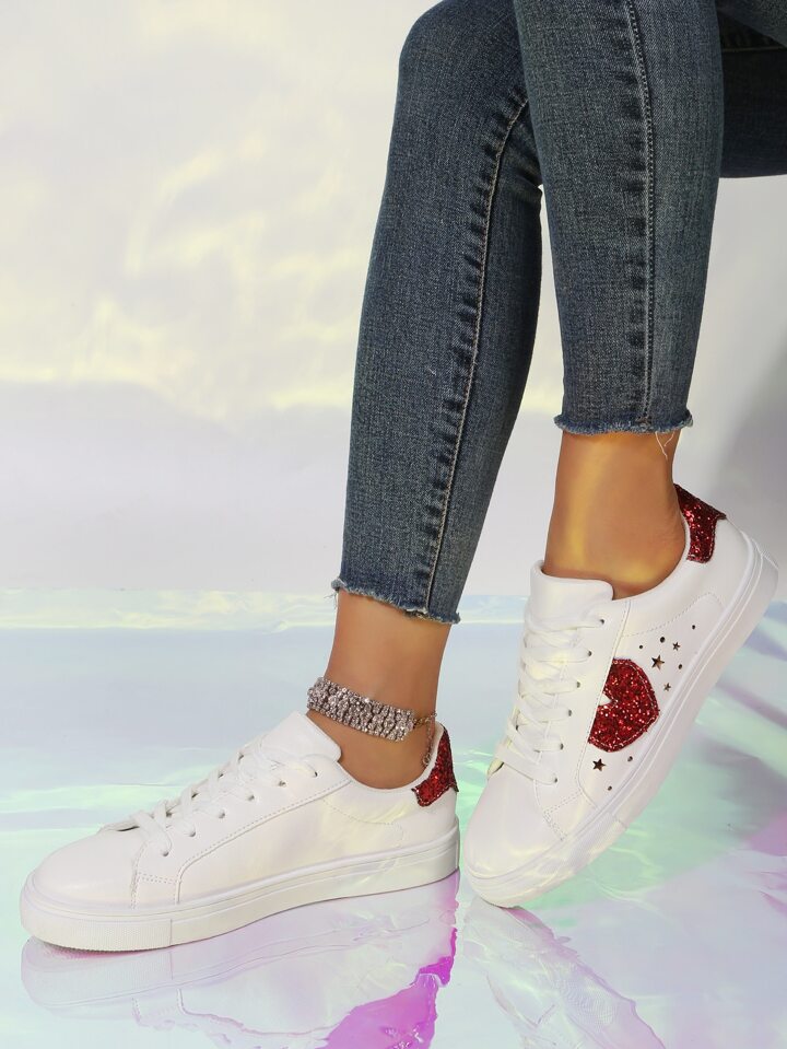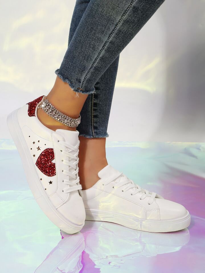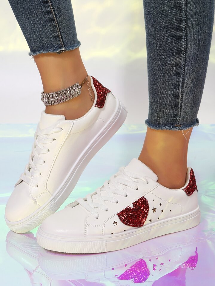 Skater Schuhe mit Glitzer, & Herz Detail, Band vorne