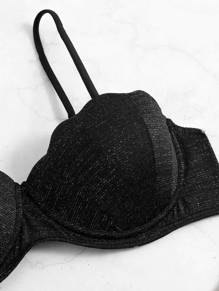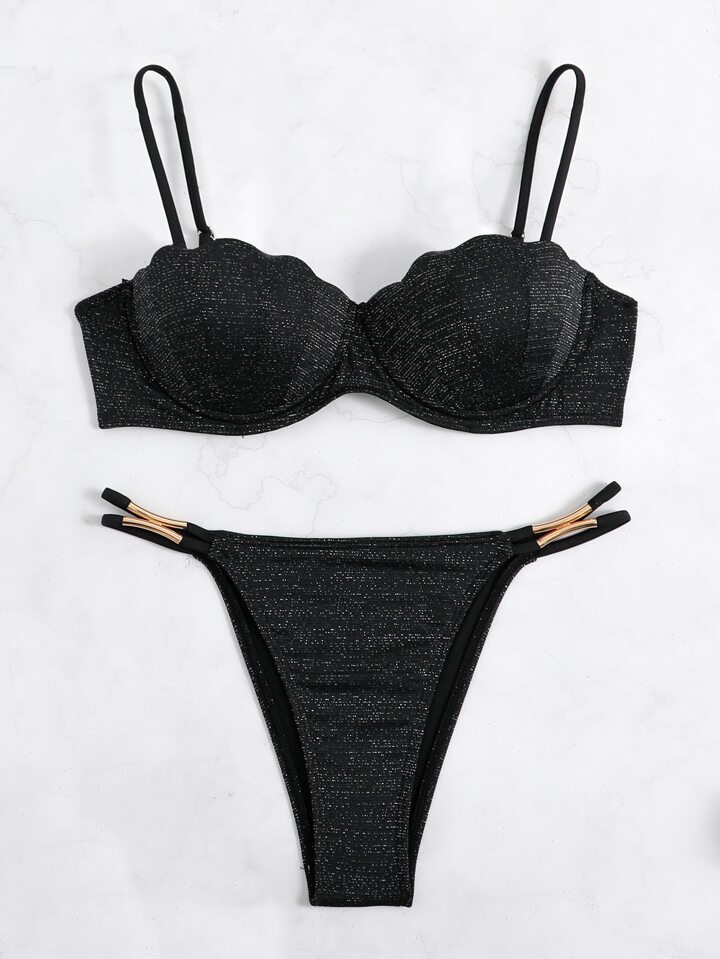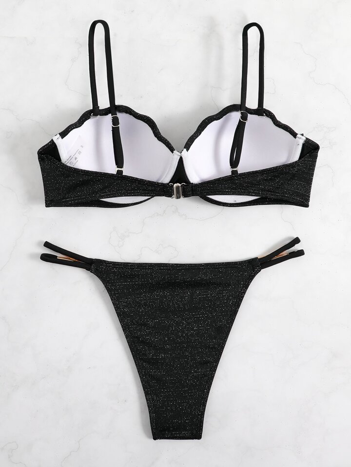 Bikini-Set für den Sommer mit glitzernden Muschelsaum, Unterstützung durch eingearbeitete Bügel und Tanga-Slip