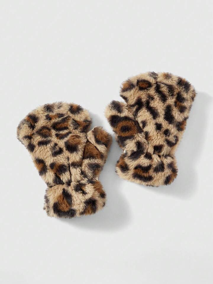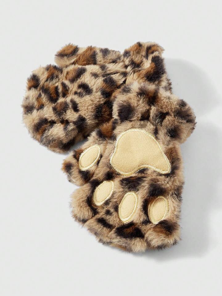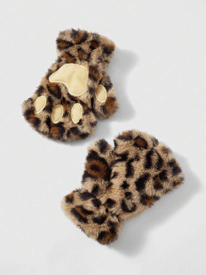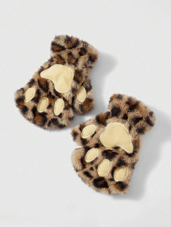 Goth 1 Paar gelb-braune Y2K Retro Fellimitat Leoparden Muster Fingerlose Handschuhe, vielseitiges Accessoire für Herbst/Winter, Halloween, geeignet für den täglichen Gebrauch, Partys, Zusammenkünfte