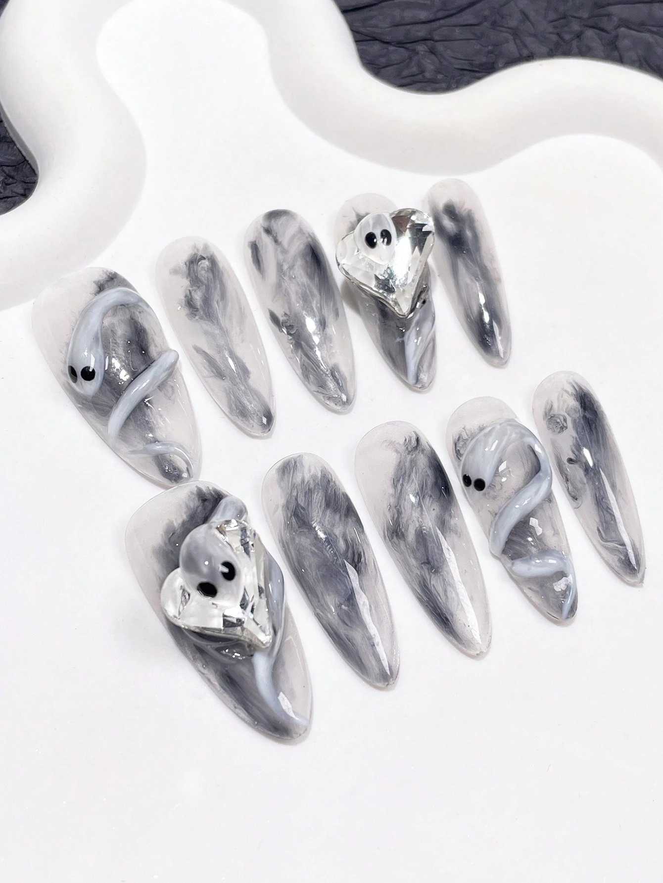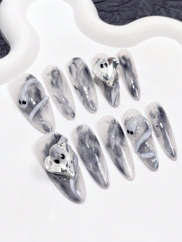 Goth 10 Stücke 3D Herz Dekoriert gefälscht Nagel Set