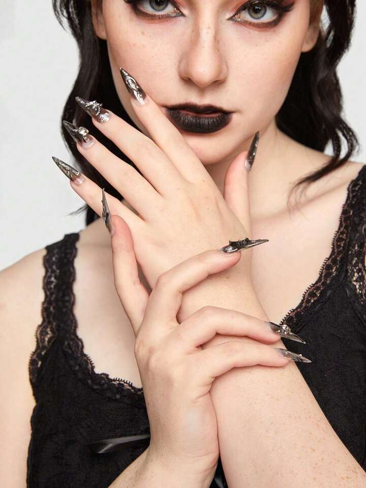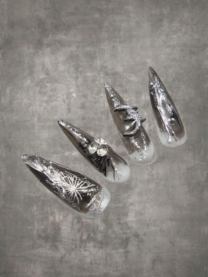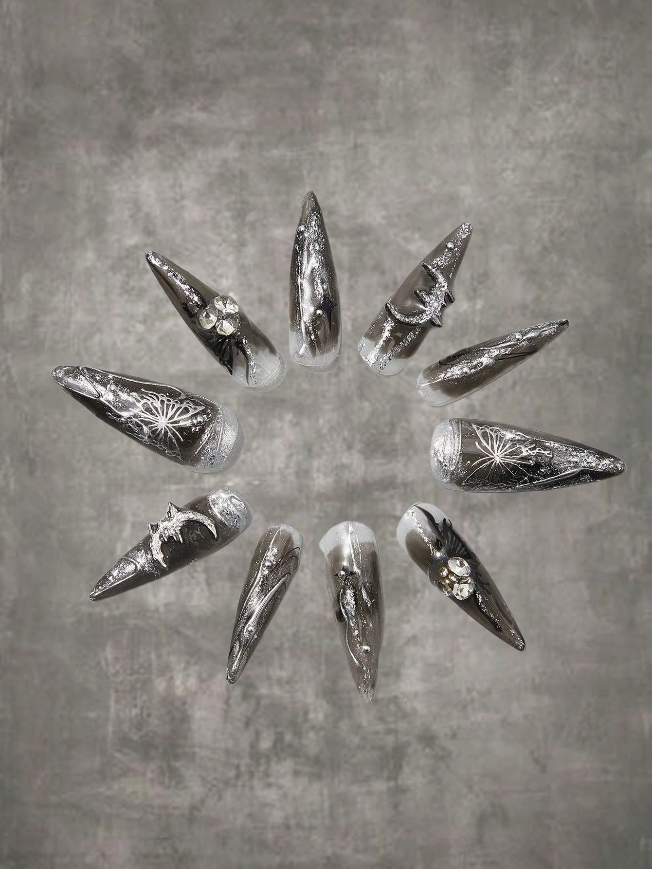 Goth 10 Stücke Lang Stöckel Design Schmetterling Muster, Strass Dekor, Kunstnägel Bausatz