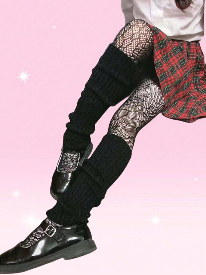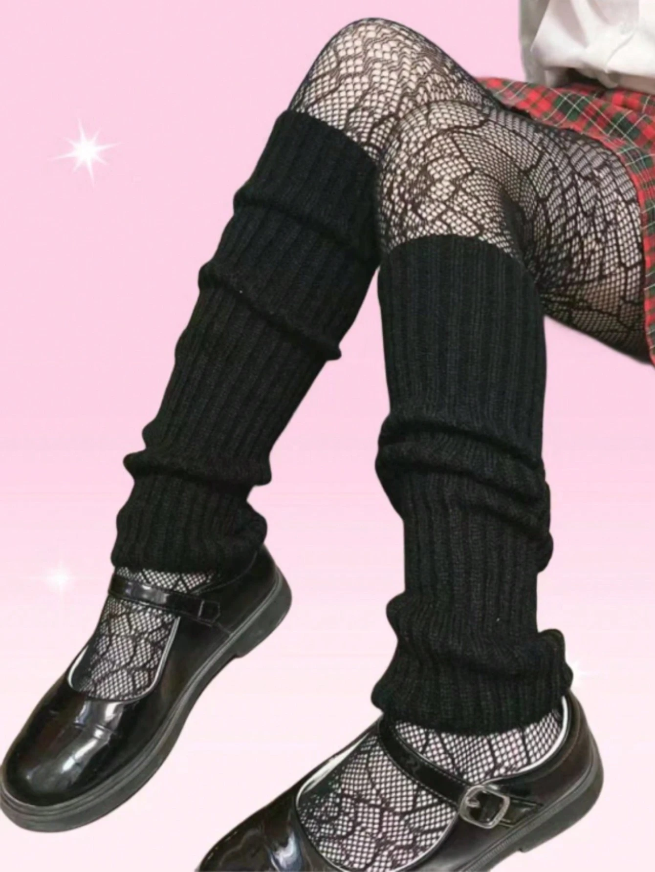 Goth 1 Paar Schwarz Beinwärmer und 1 Stück Schwarz Spinne Fischnetzstrumpfhose mit Set