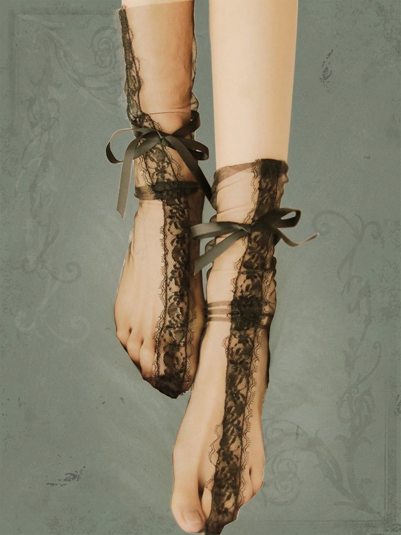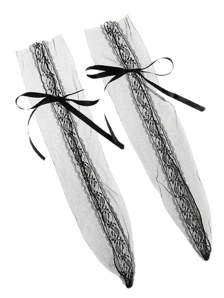 Goth 1 Paar Damen Socken mit kontrastierenden, durchsichtigenen Spitzenbesatz