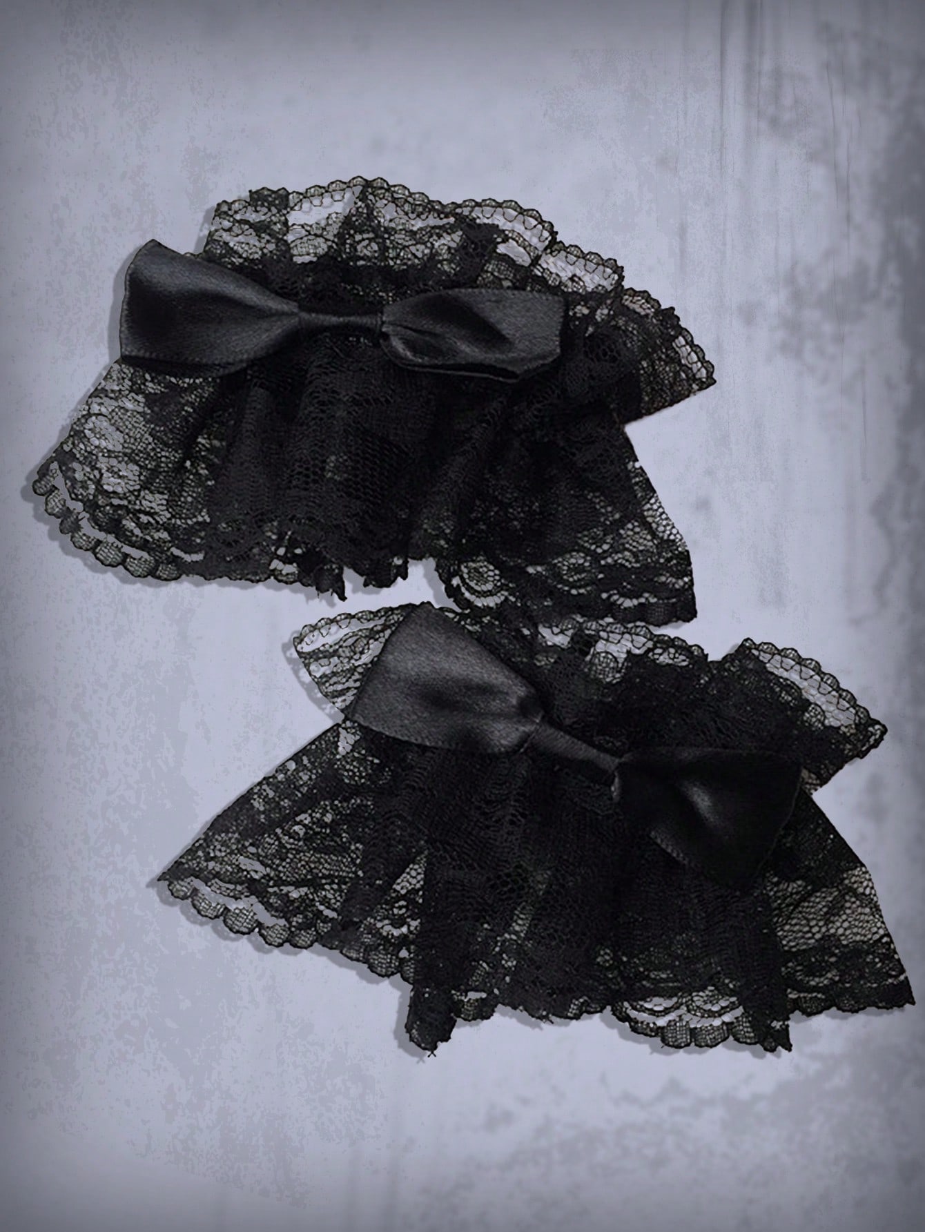 Goth Frauen 1 Paar Handschuhe Spitzenbesatz, Schleife Dekor